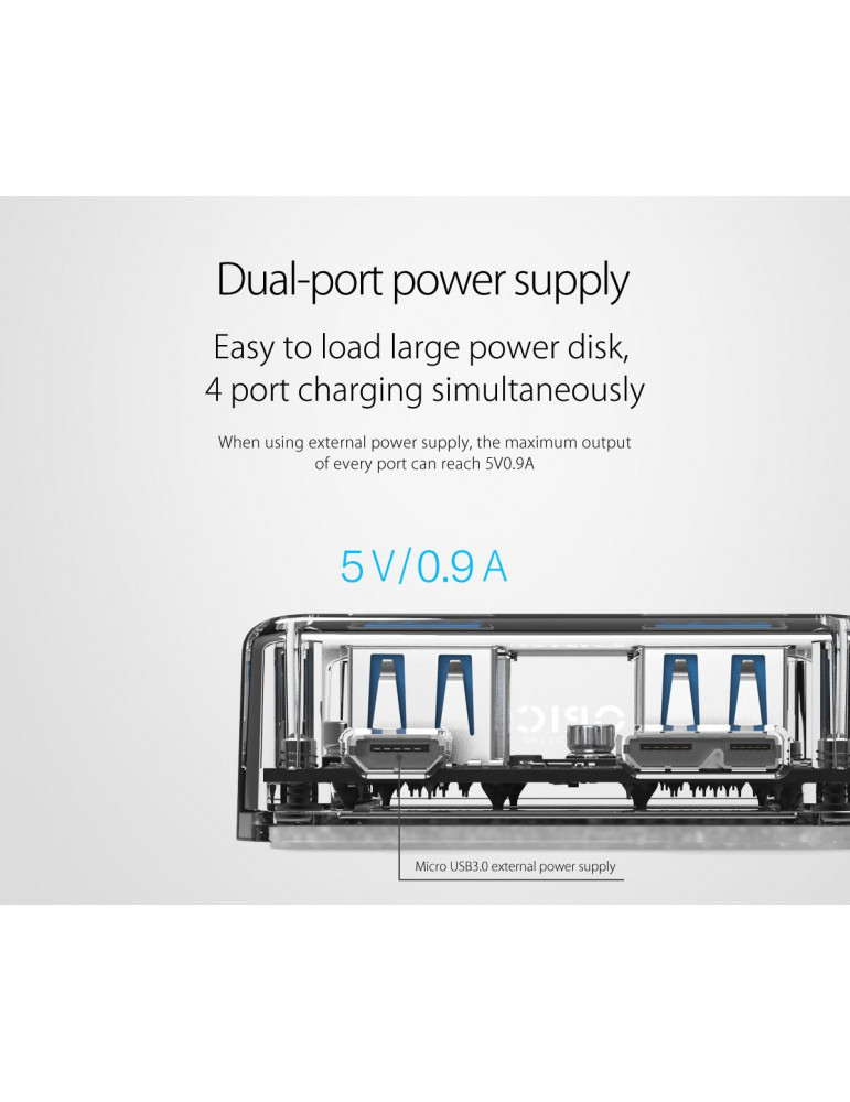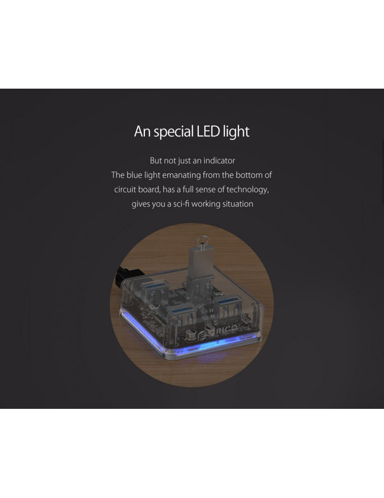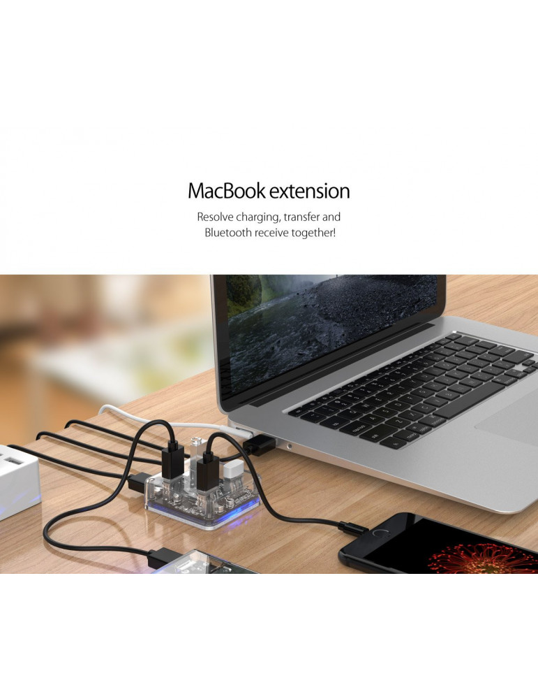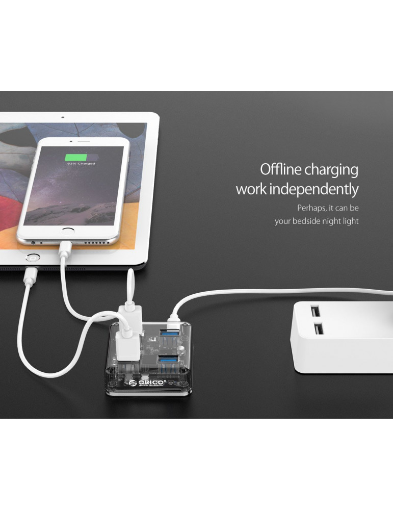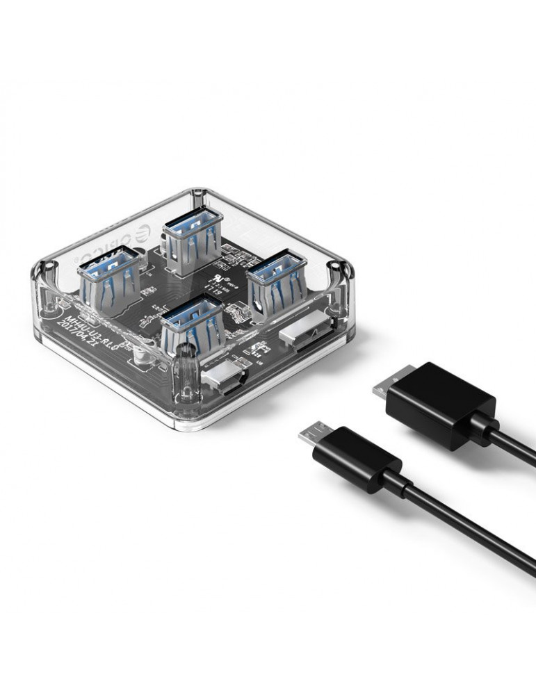 Хъб Orico USB3.0 HUB 4 port transparent, 1m cable - MH4U-U3-10-CR