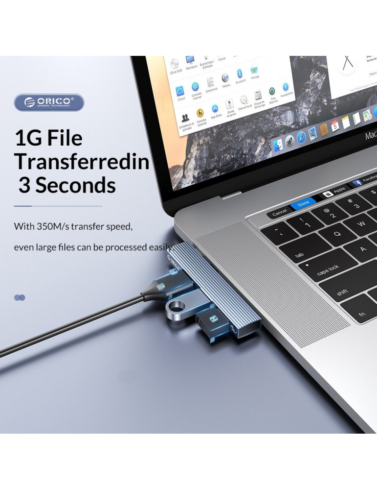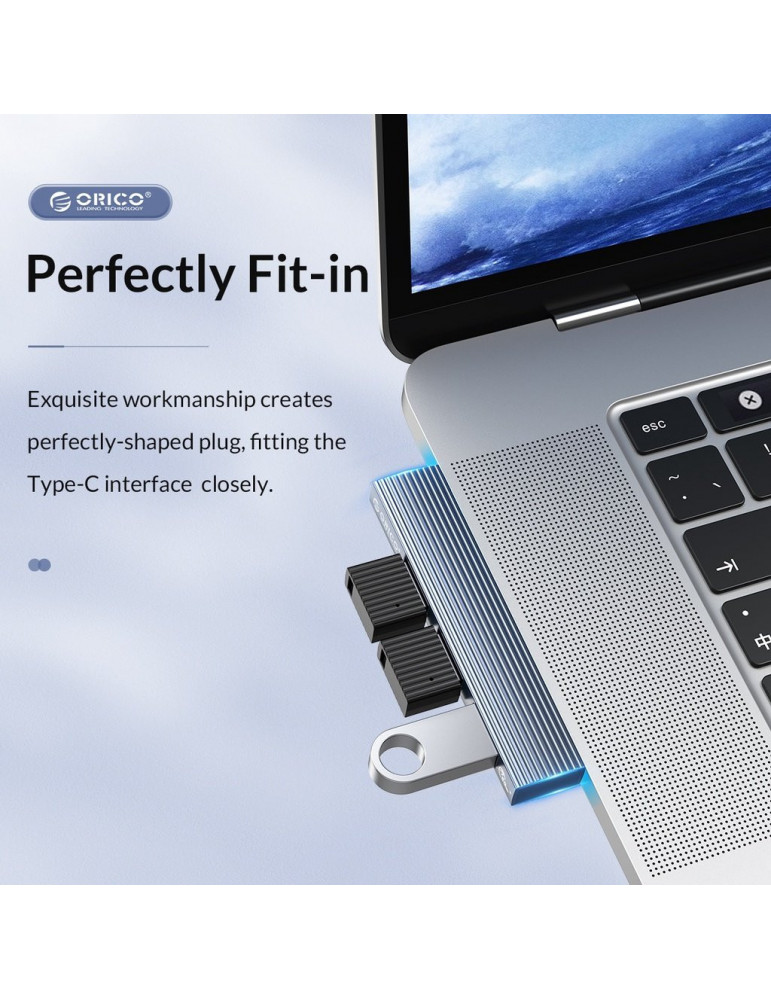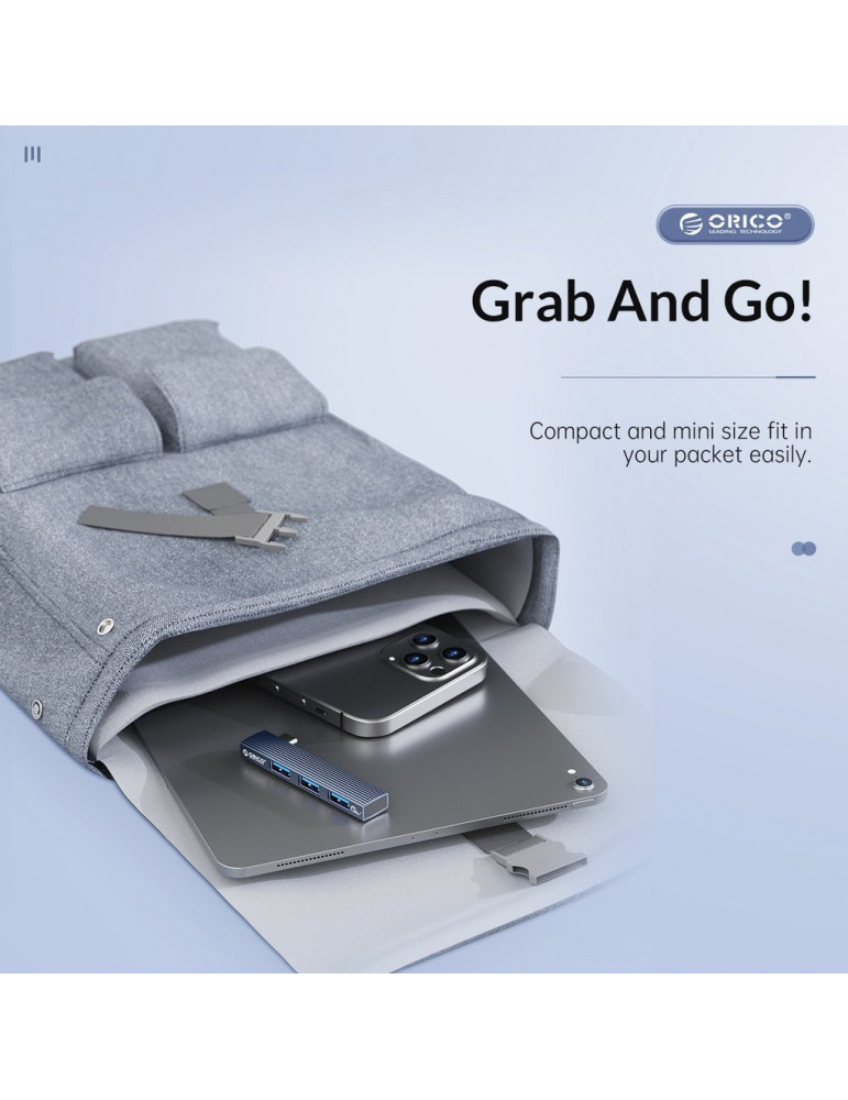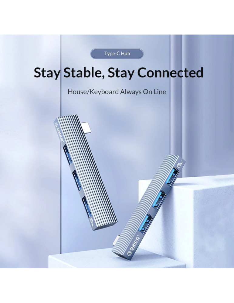 Хъб Orico USB3.0/2.0 HUB 3 port TYPE C, Aluminum - AH-W13-GY-BP