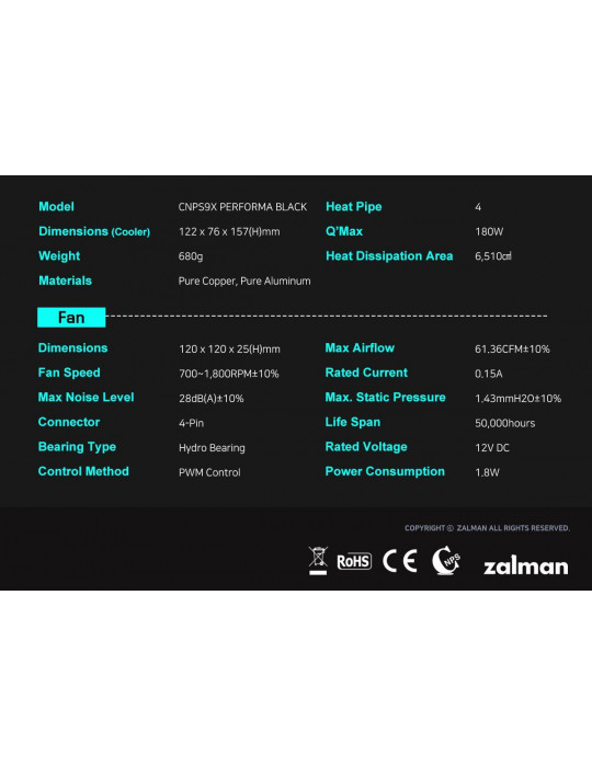 Охладител за процесор Zalman CNPS9X PERFORMA BLACK - CNPS9X-PERFORMA