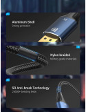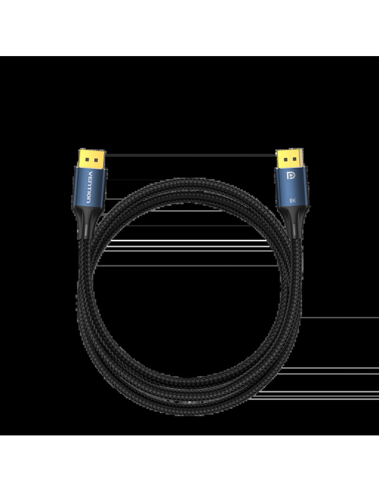Кабел Vention Display Port 1.4 DP M / M 8K 2m, Cotton Braided, Blue Aluminum Alloy - HCELH