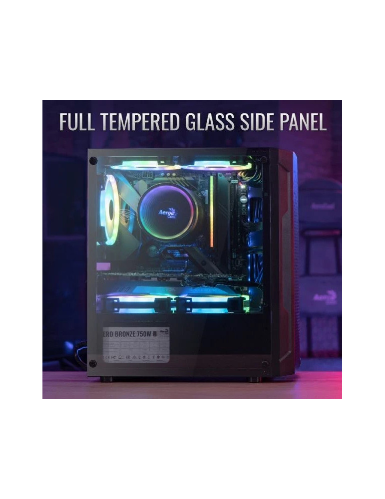 Кутия за компютър AeroCool Trinity Mini-G-BK-v, mATX, 3бр вентилатори, Tempered Glass - ACCS-PV32133.11
