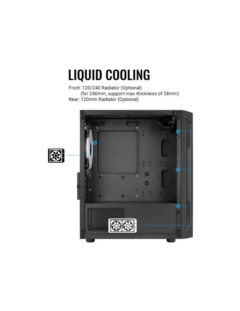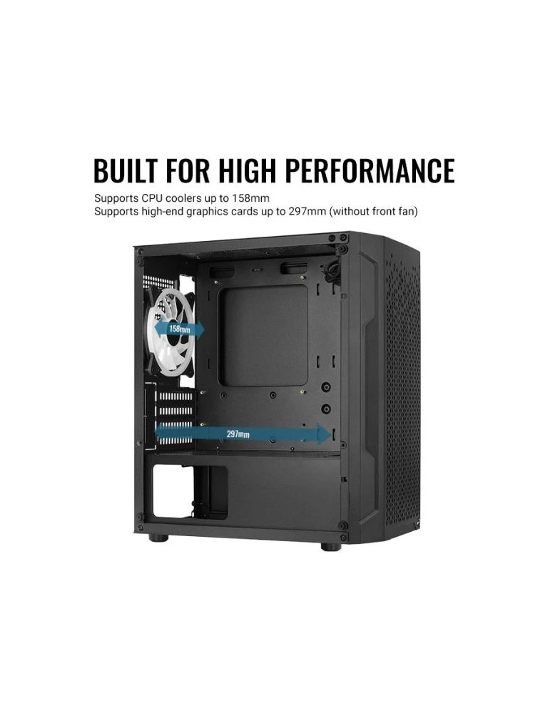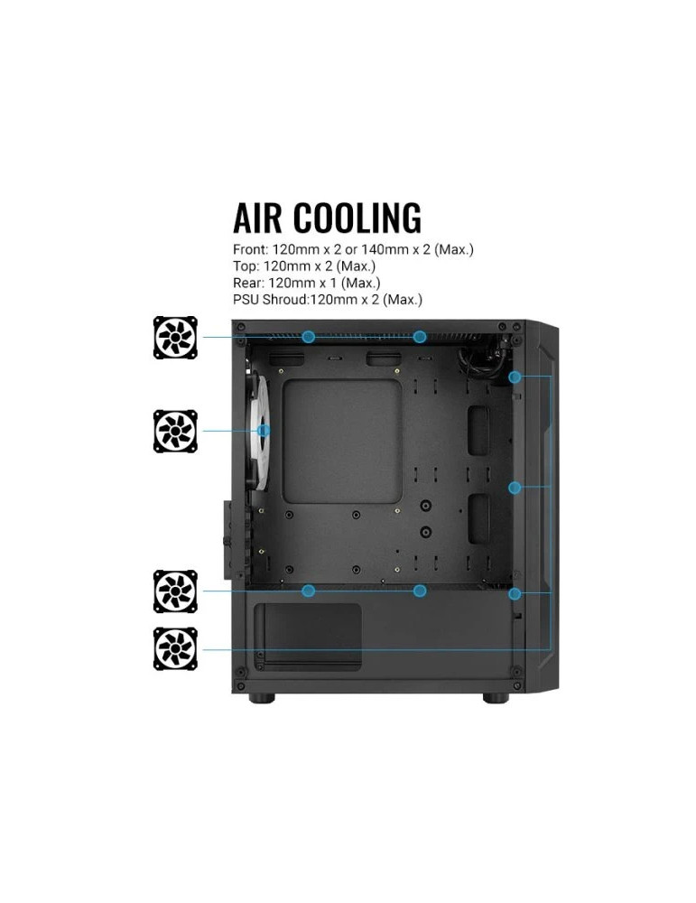 | ДОПЪЛНИТЕЛНИ | Comes equipped with a full tempered side panel to showcase the inside of your rig Fan mounts on the PSU shroud support up to two 12cm fans for improved VGA cooling Front panel with air vents delivers superior air flow and ventilation while allowing for viewing of your front LED fans |