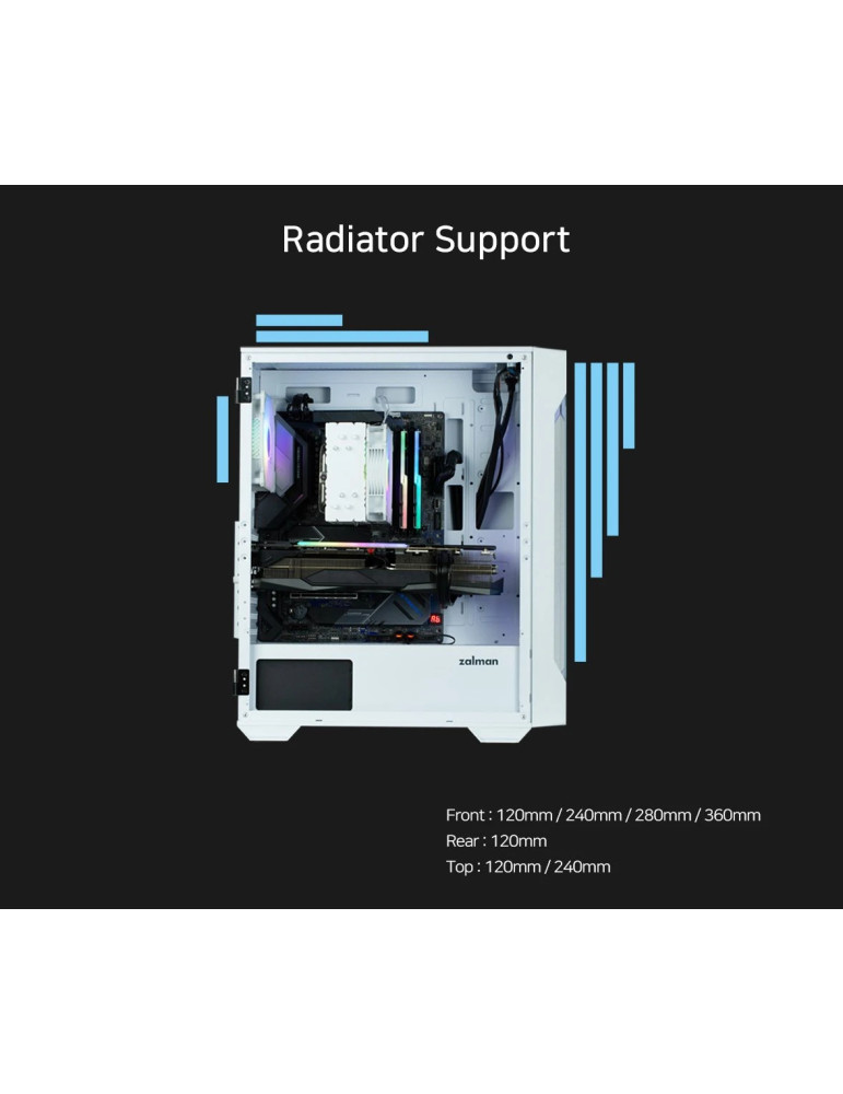 | ПОДДРЪЖКА НА ВОДНО ОХЛАЖДАНЕ | 120 mm - Отгоре 120 mm - Отзад 120 mm - Отпред 240 mm - Отгоре 240 mm - Отпред 280 mm - Отпред 360 mm - Отпред |