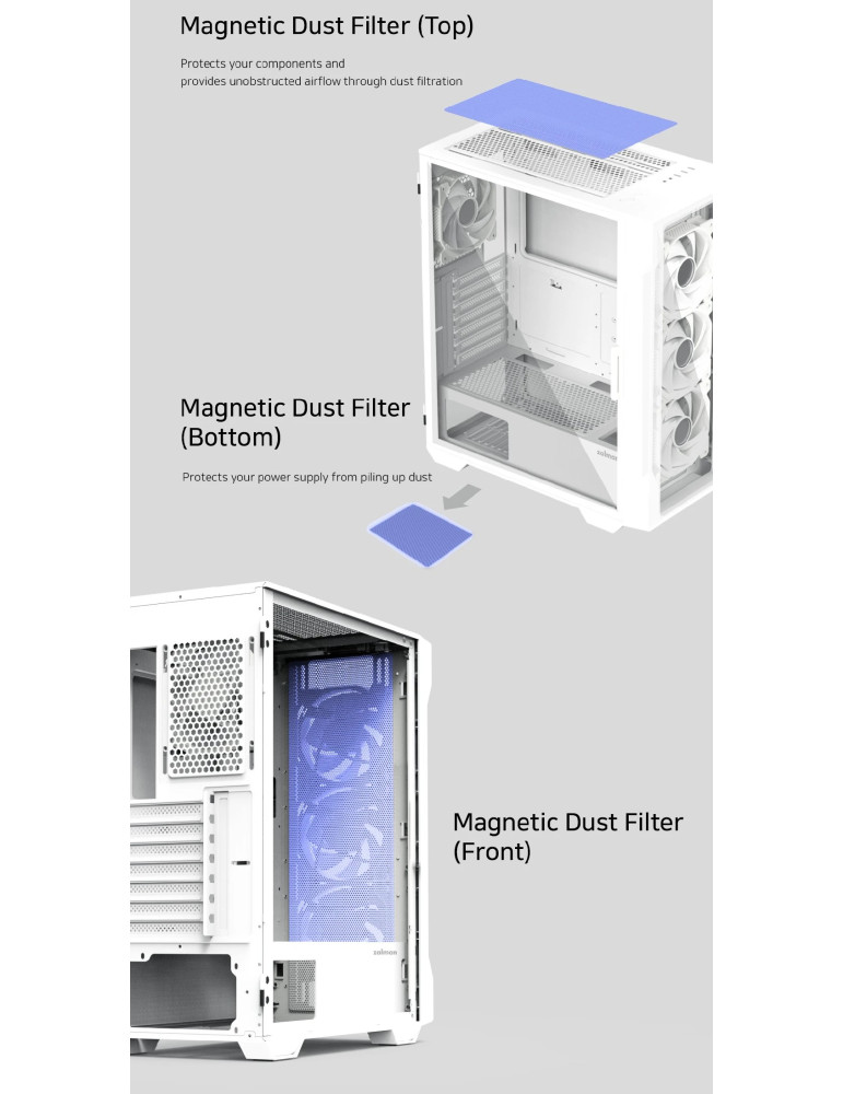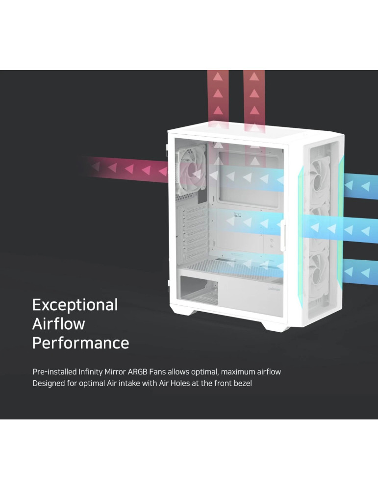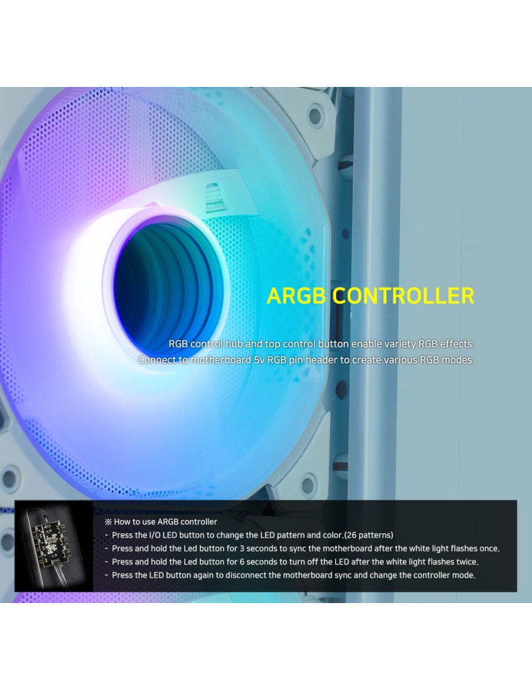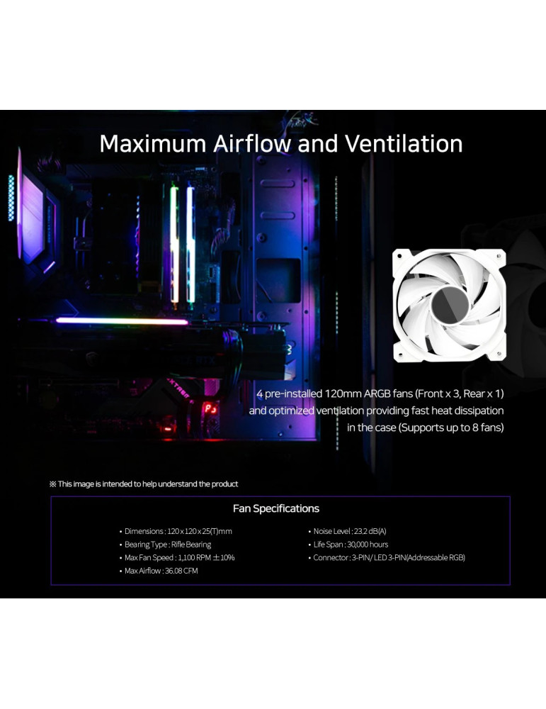 | ДОПЪЛНИТЕЛНИ | Hinged glass side panel Magnetic dust filter Pre-installed 4 aRGB fans Supports up to 8 fans aRGB controller included |