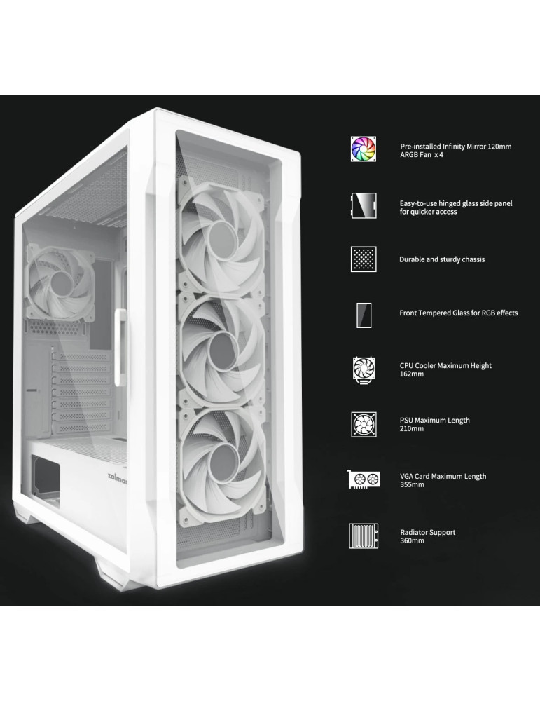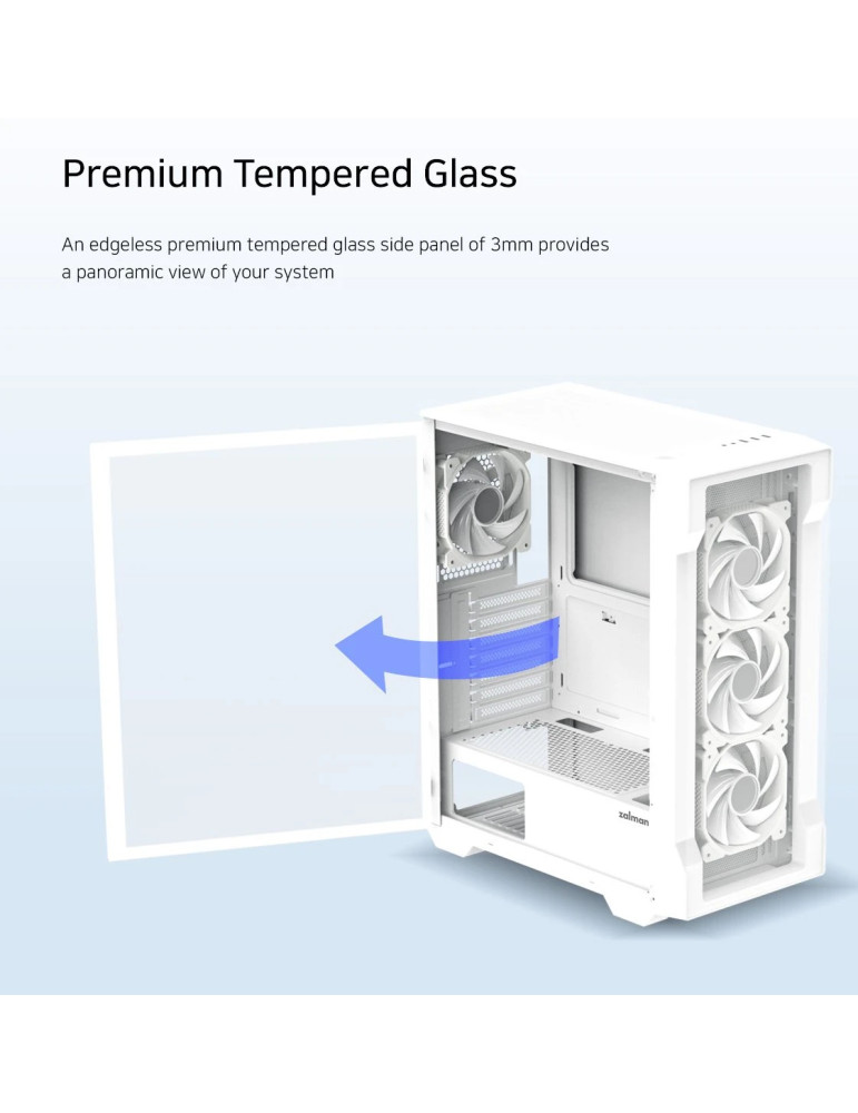 Кутия за компютър Zalman I3 NEO TG White, ATX, aRGB, Tempered Glass - ZM-I3-NEO-TG-White