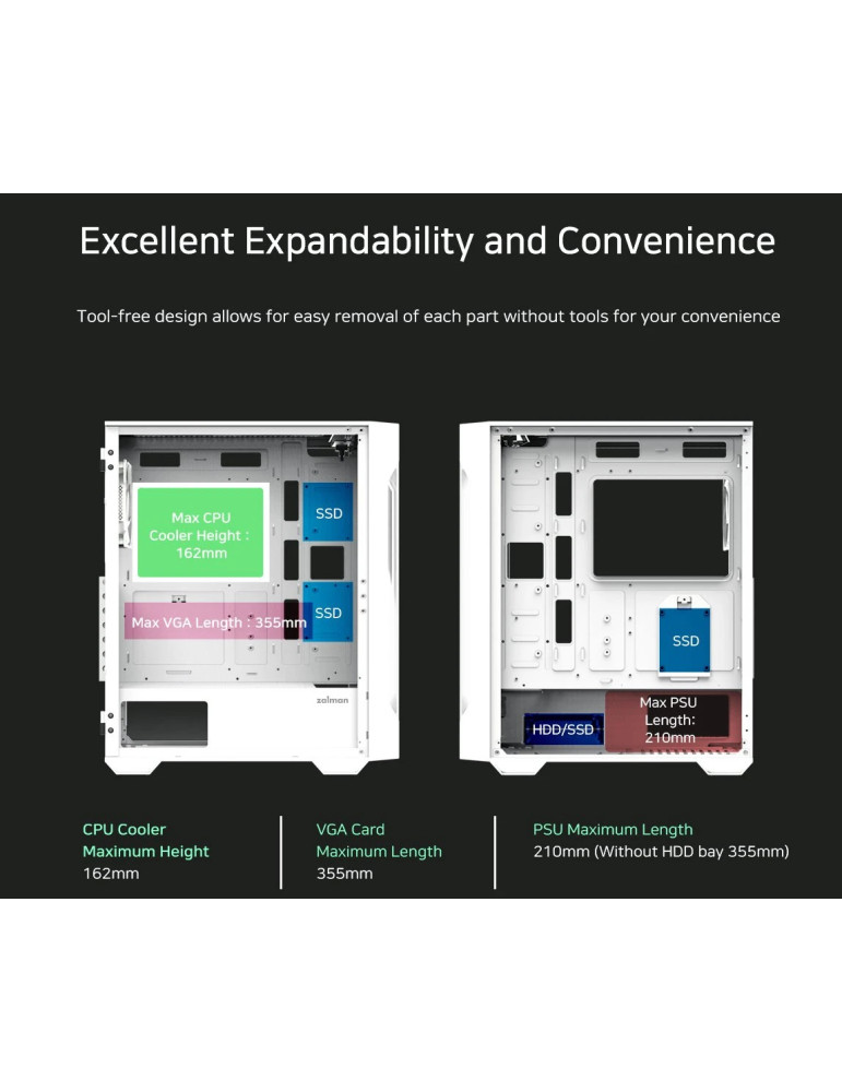 | ОПЦИОНАЛНИ ВЕНТИЛАТОРИ | Bottom: 2 x 120 mm Front: 3 x 120 mm / 3 x 140 mm Rear: 1 x 120 mm Top: 2 x 120 mm / 2 x 140 mm |