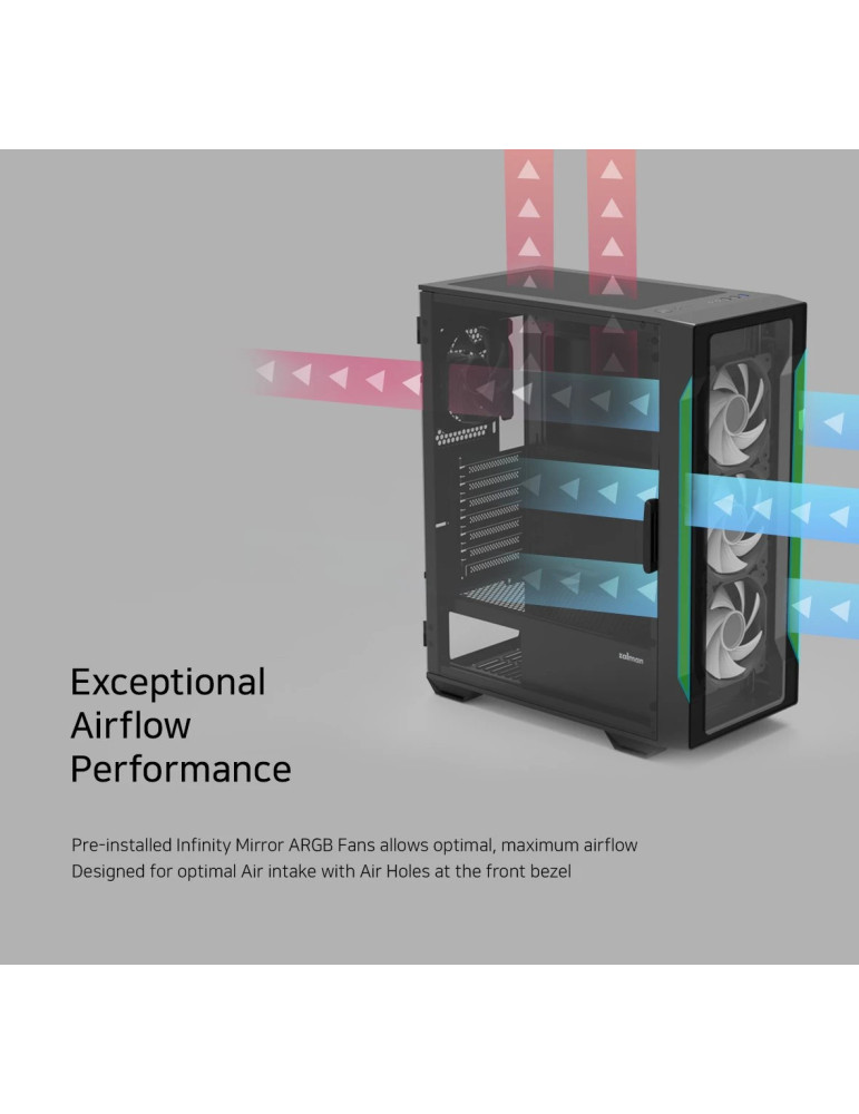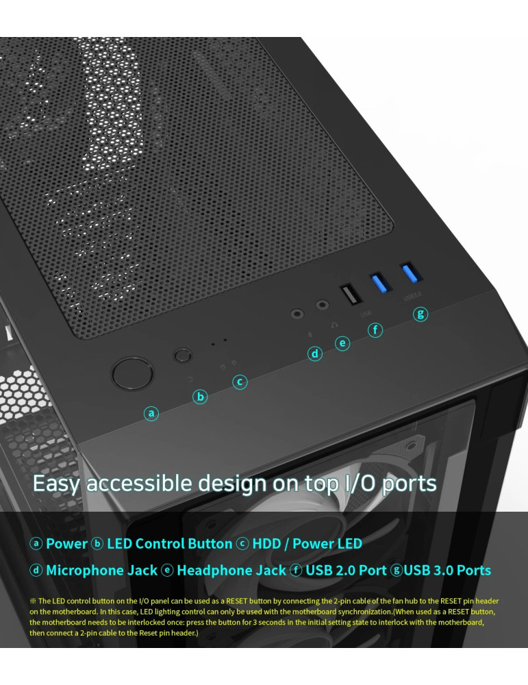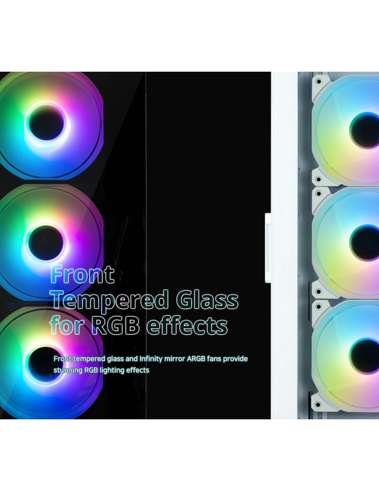 | ДОПЪЛНИТЕЛНИ | Hinged glass side panel Magnetic Dust Filter Pre-installed 4 aRGB fans Supports up to 8 fans aRGB controller included |