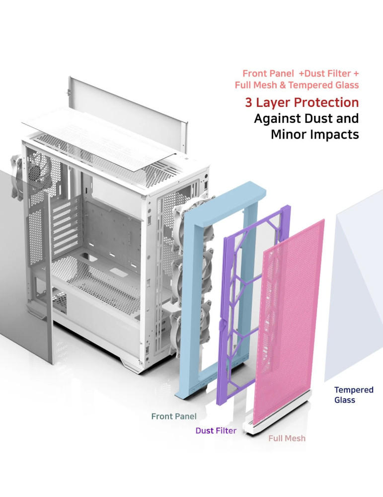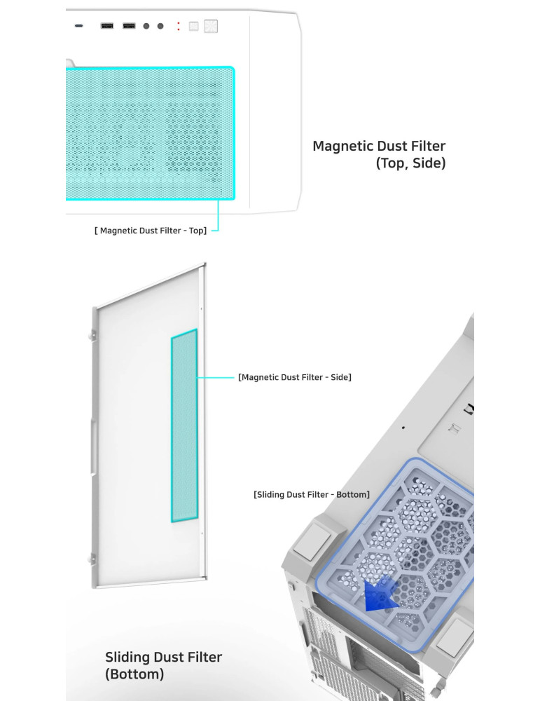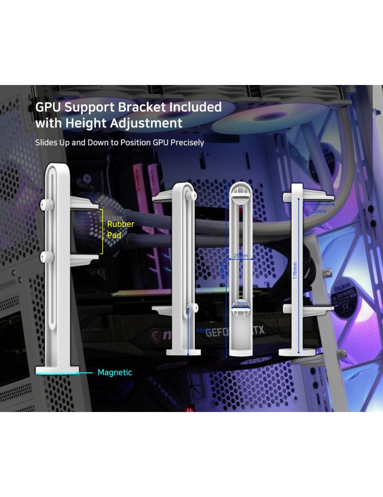 | ДОПЪЛНИТЕЛНИ | ARGB Controller 6 channel included Cable Management GPU Support Bracket Magnec Dust Filters Sliding Dust Filters Tempered Glass Front Panel and Full Mesh Front Panel both included Vertical GPU Bracket included Water Cooling up to 360mm |