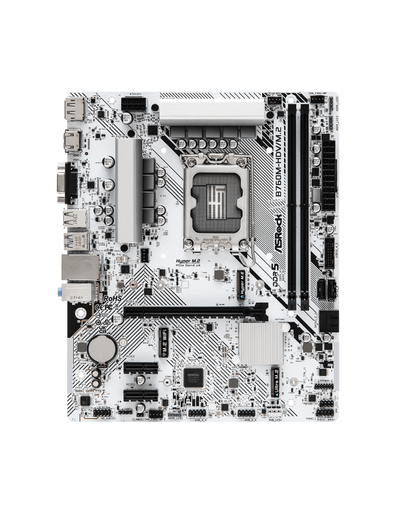 Дънна платка ASRock B760M-HDV/M.2, LGA1700, DDR5, PCI-E 4.0, 2x M.2, USB Type-C, Micro ATX