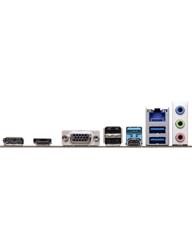 | Вх/Изх | - 2 x Antenna Mounting Points; - 1 x D-Sub Port; - 1 x HDMI Port; - 1 x DisplayPort 1.4; - 1 x USB 3.2 Gen1 Type-C Port; - 3 x USB 3.2 Gen1 Type-A Ports; - 2 x USB 2.0 Ports; - 1 x RJ-45 LAN Port; - HD Audio Jacks: Line in / Front Speaker / Microphone |