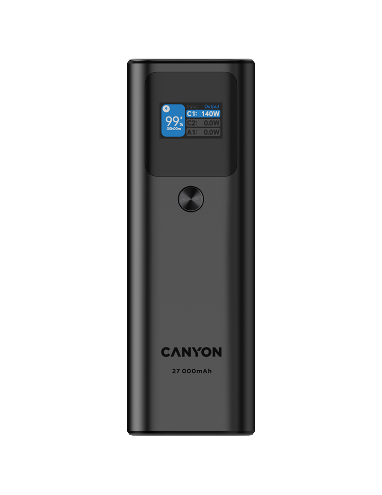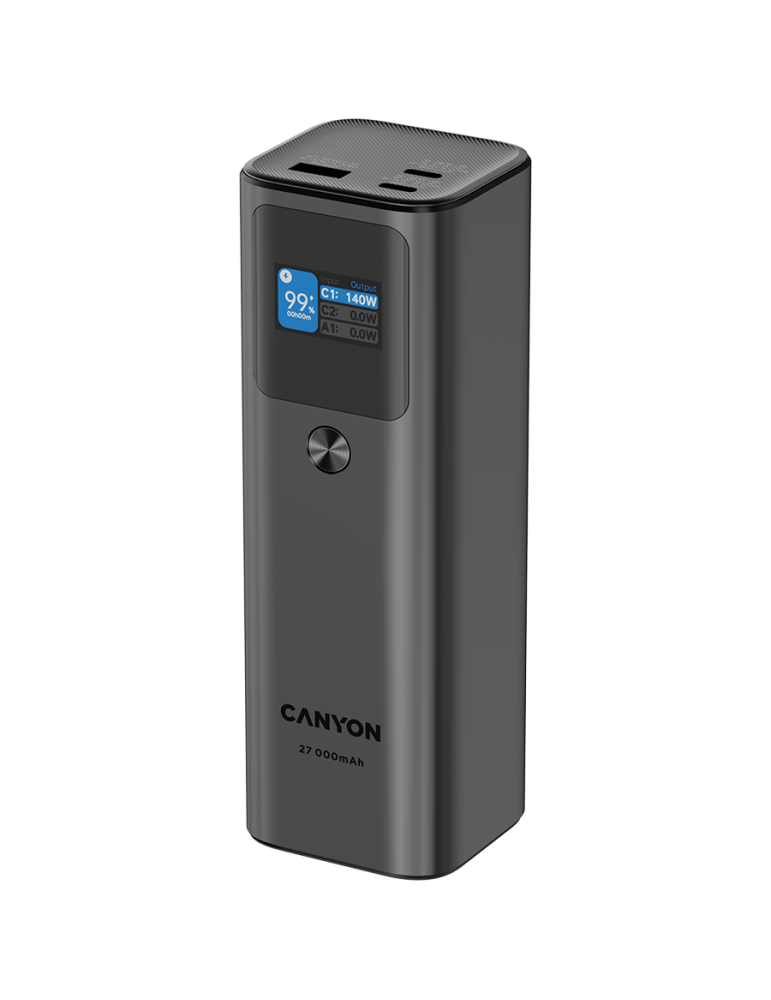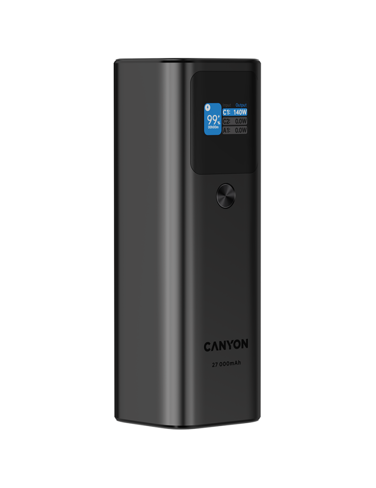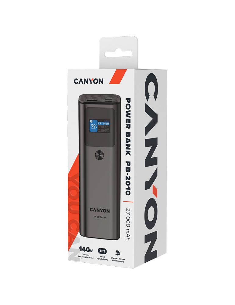 | Търговско име | Power bank Canyon PB-2010 TFT 27000 mAh 97.2Wh PD140W QC 3.0 Dark Grey (CNE-CPB2010DG) |
