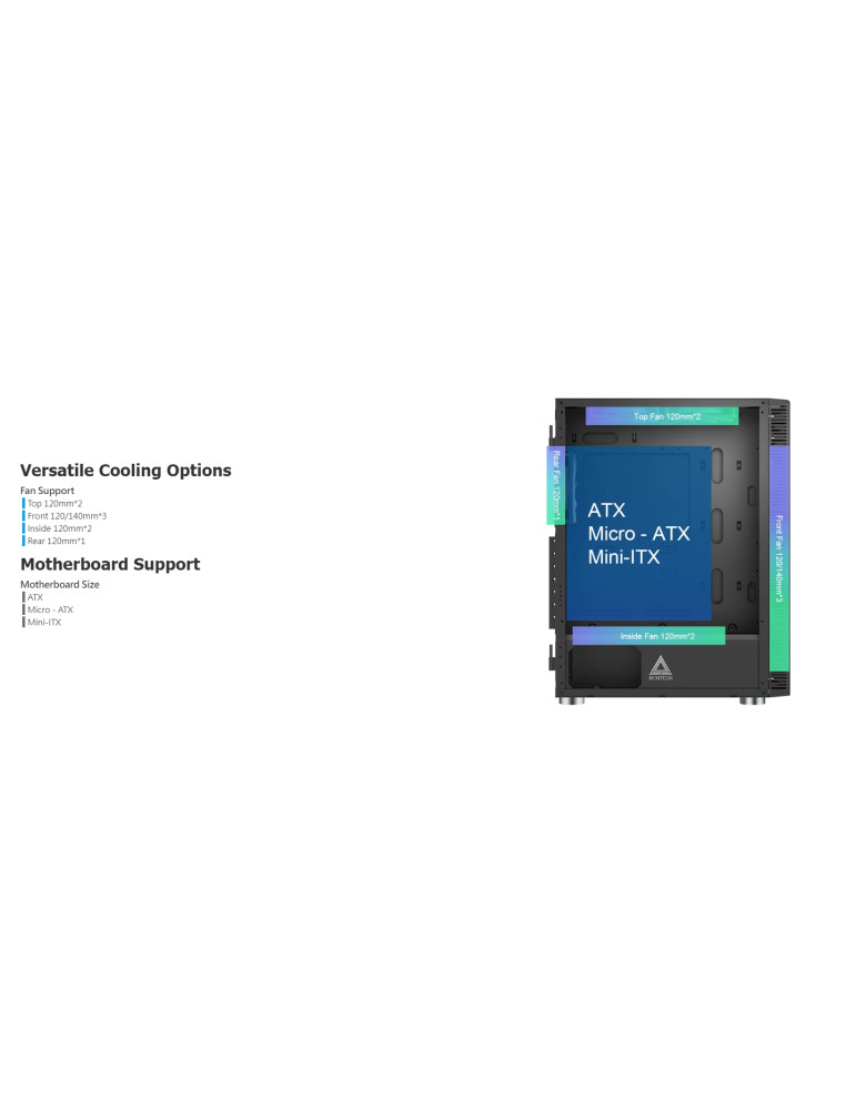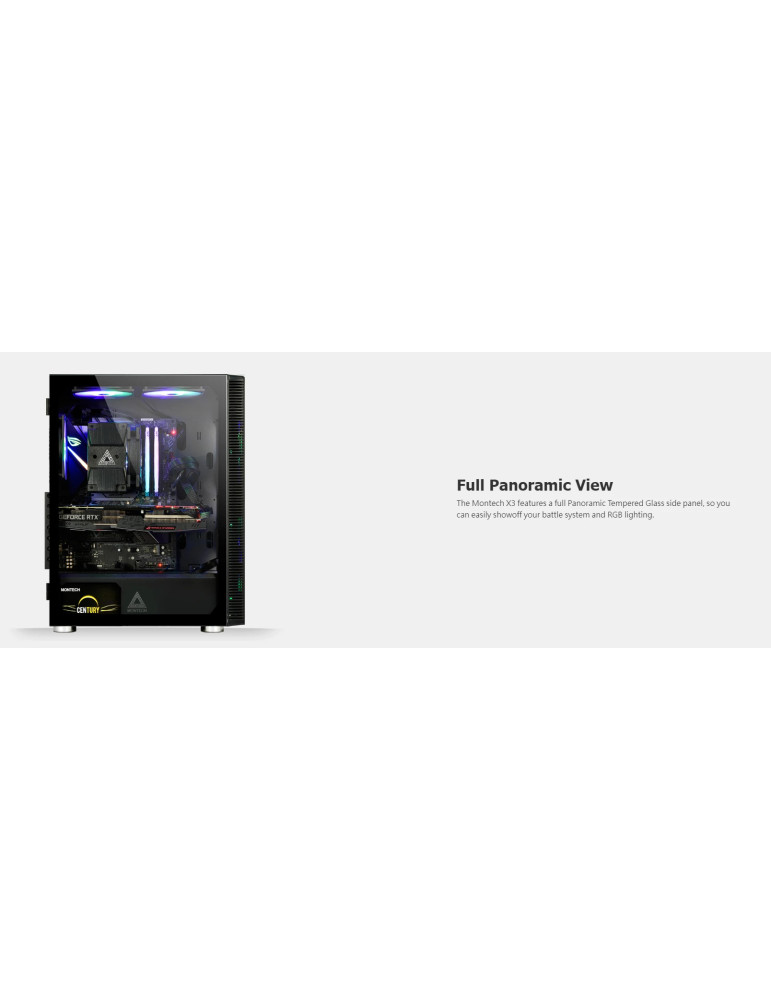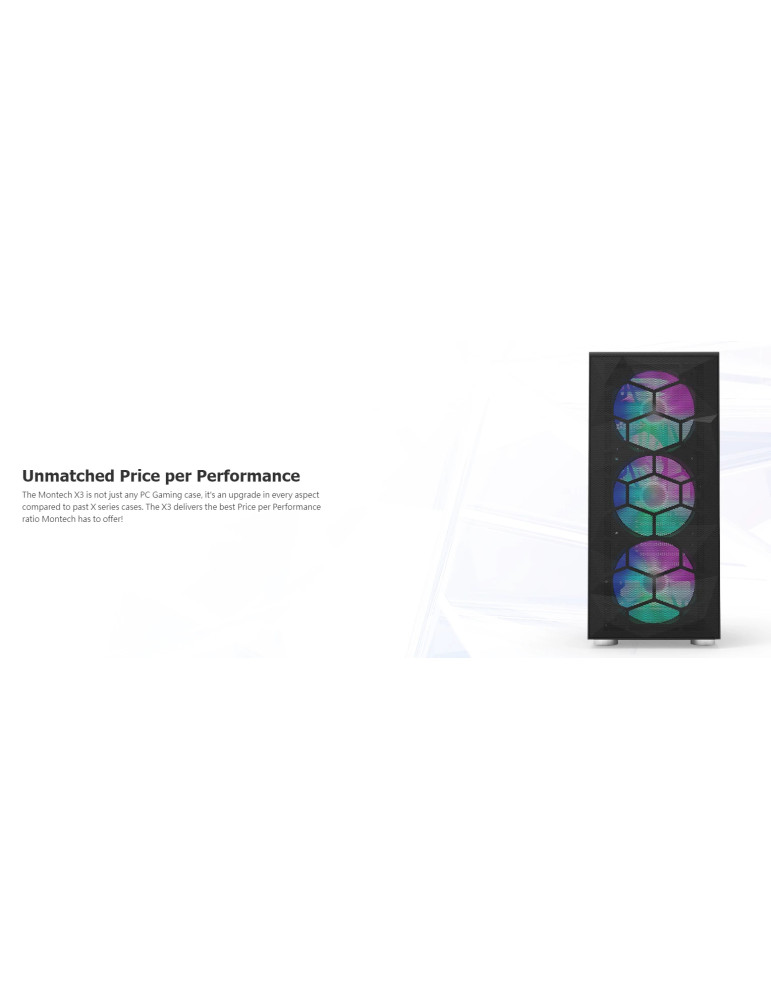 Кутия за компютър Montech X3 MESH, Mid-tower Case, TG, 6 fixed RGB Fans, Black - MONTECH-X3-MESH-BK