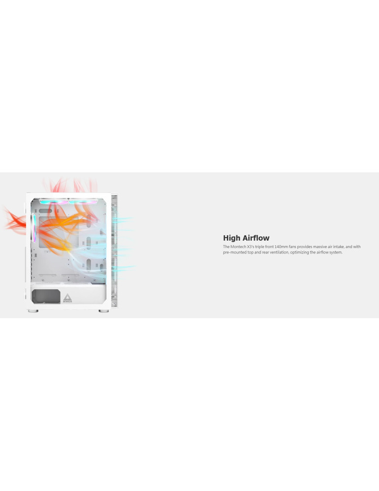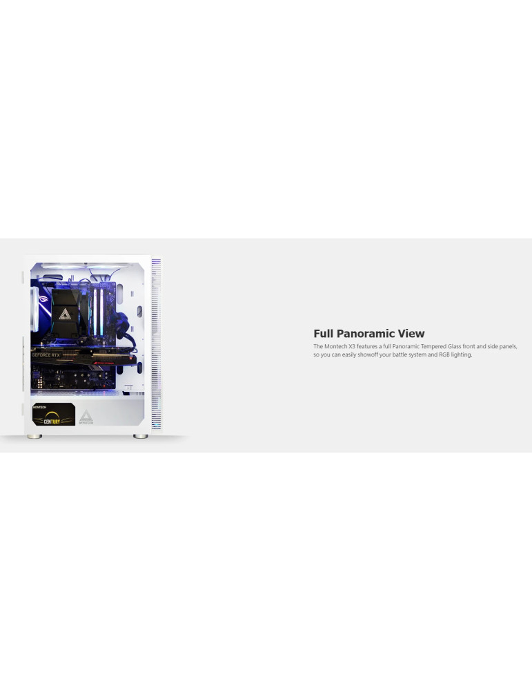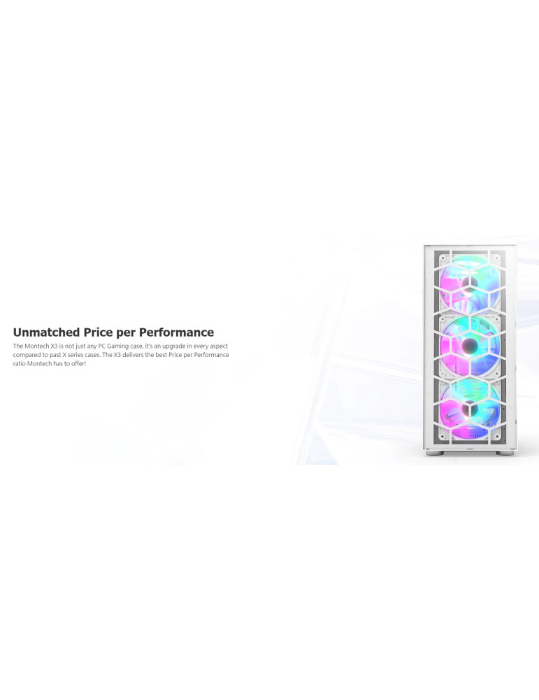 Кутия за компютър Montech X3 GLASS, Mid-tower Case, TG, 6 fixed RGB Fans, White - MONTECH-X3-GLASS-WH