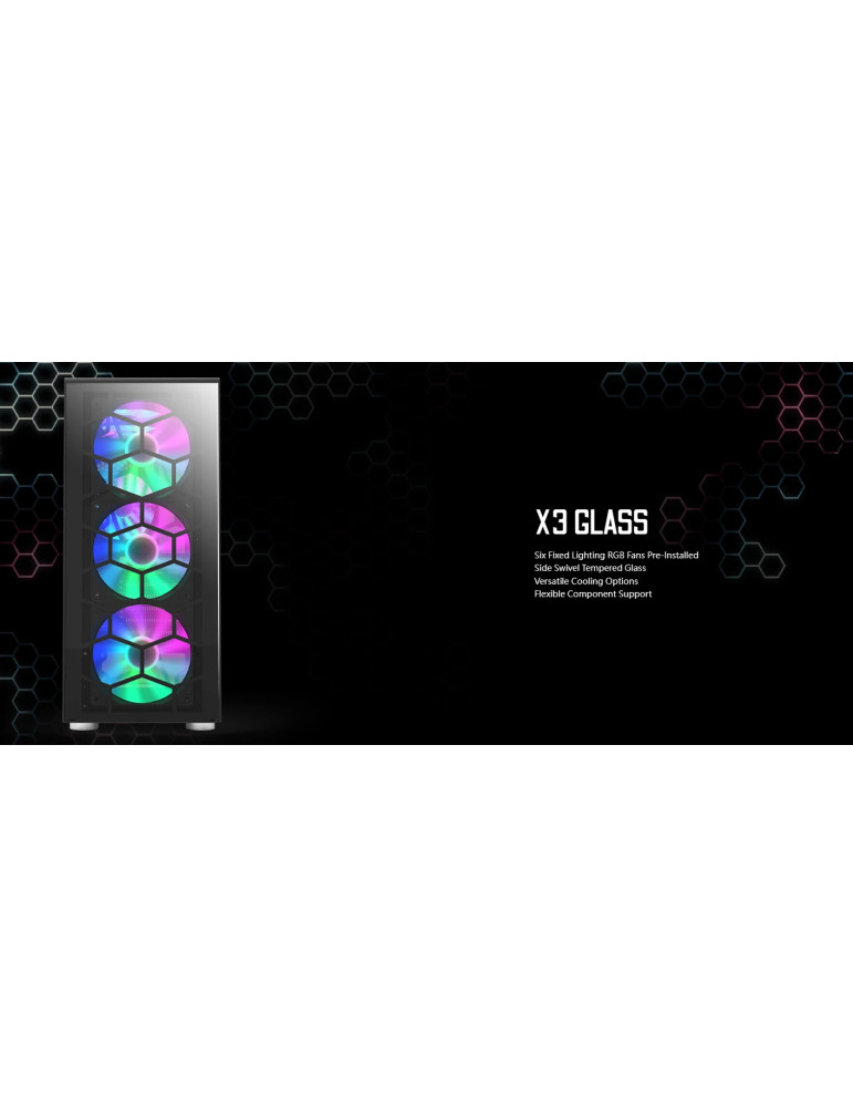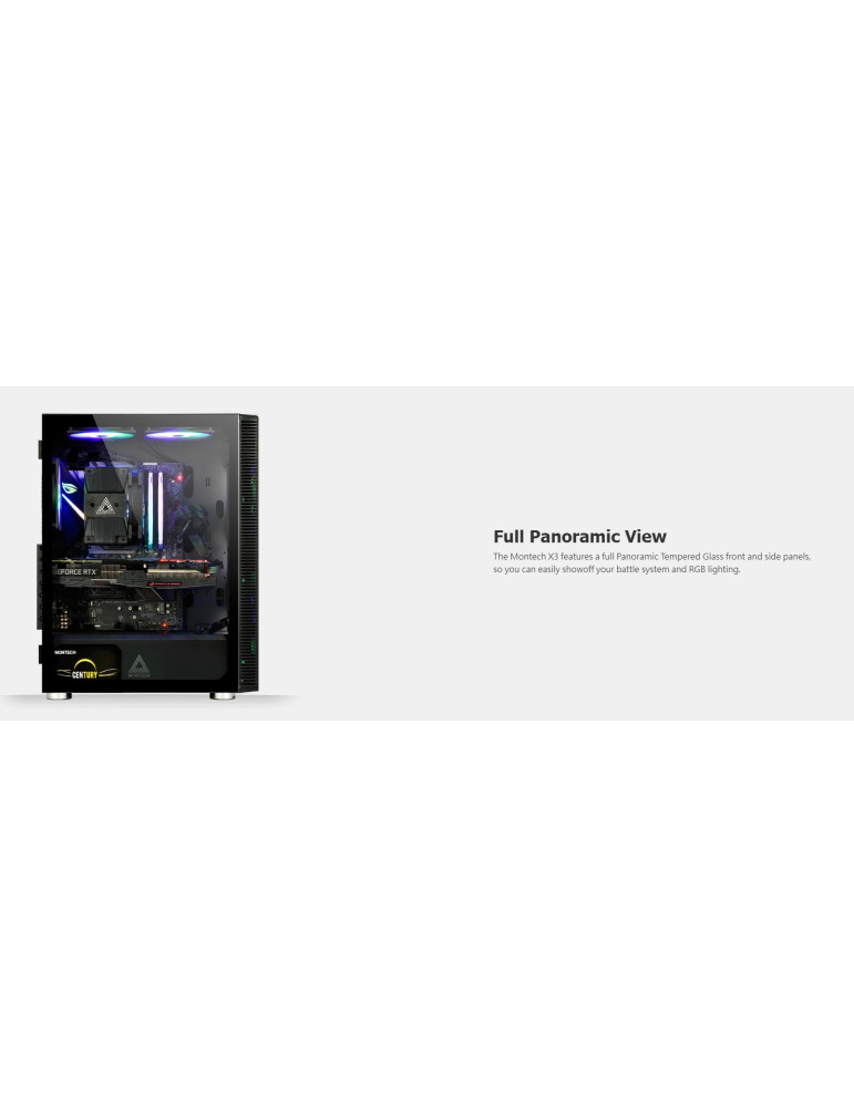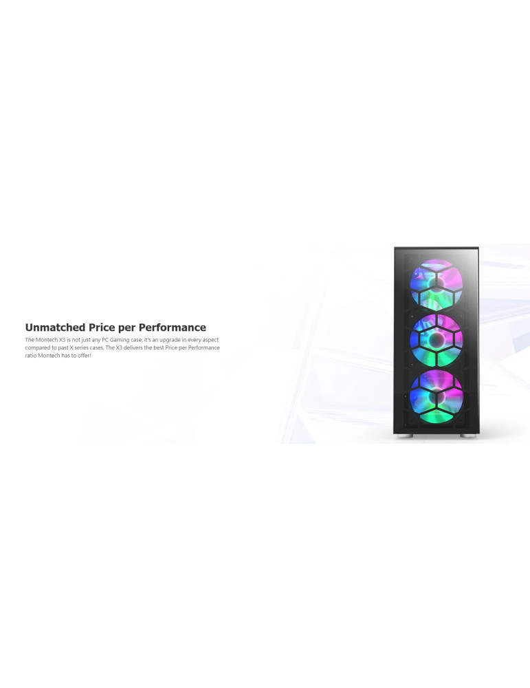 Кутия за компютър Montech X3 GLASS, Mid-tower Case, TG, 6 fixed RGB Fans, Black - MONTECH-X3-GLASS-BK