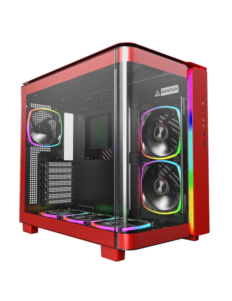 Кутия за компютър Montech KING 95 Pro, Dual Chamber Mid-tower Case, 6 ARGB Fans, 2 Front Panels, Red - MONTECH-KING-95-PRO-RD