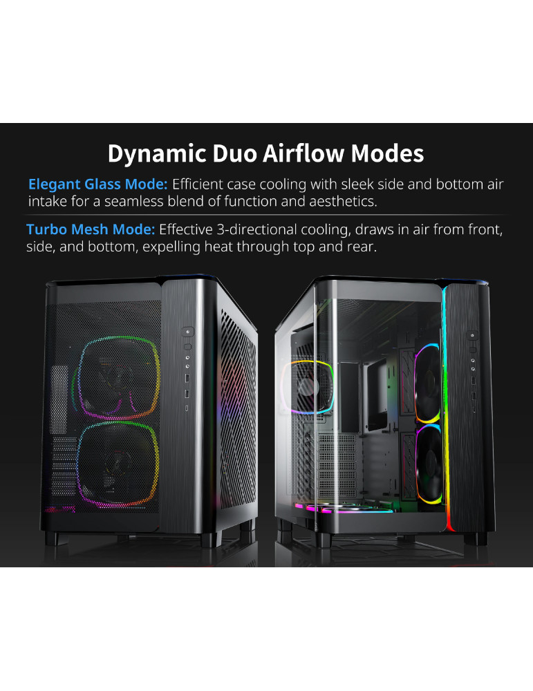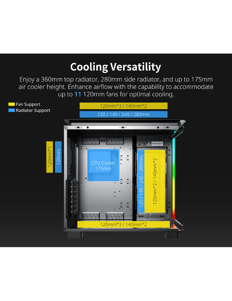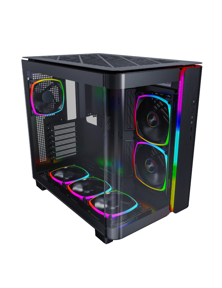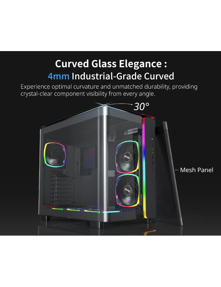 Кутия за компютър Montech KING 95 Pro, Dual Chamber Mid-tower Case, 6 ARGB Fans, 2 Front Panels, Black - MONTECH-KING-95-PRO-BK
