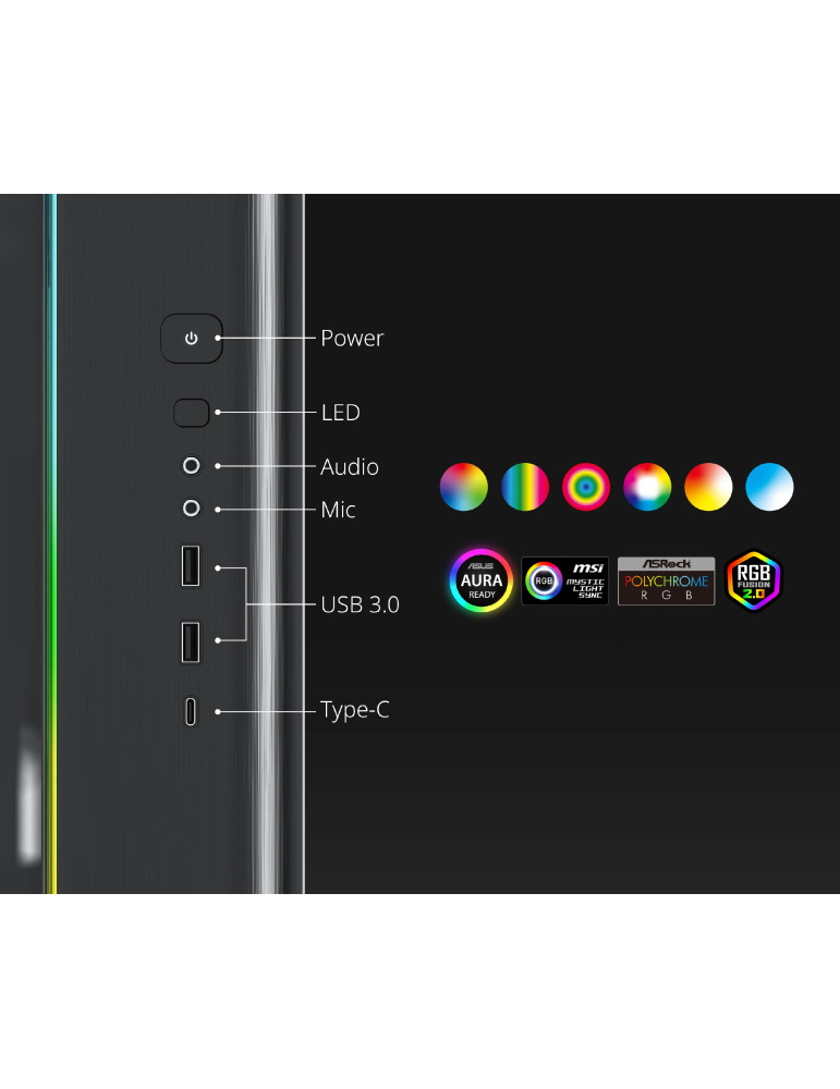 | ИНТЕРФЕЙС | 1 x USB 3.2 Gen 2 Type-C 2 x USB 3.0 HD Audio Headphones HD Audio Mic RGB button |