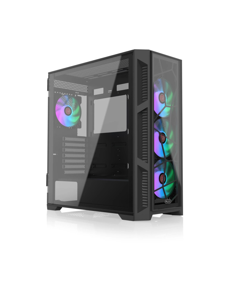 | ДОПЪЛНИТЕЛНИ | 4 A-RGB 120 mm fans included 4 mm Temepered Glass Hinged design glass side panel |