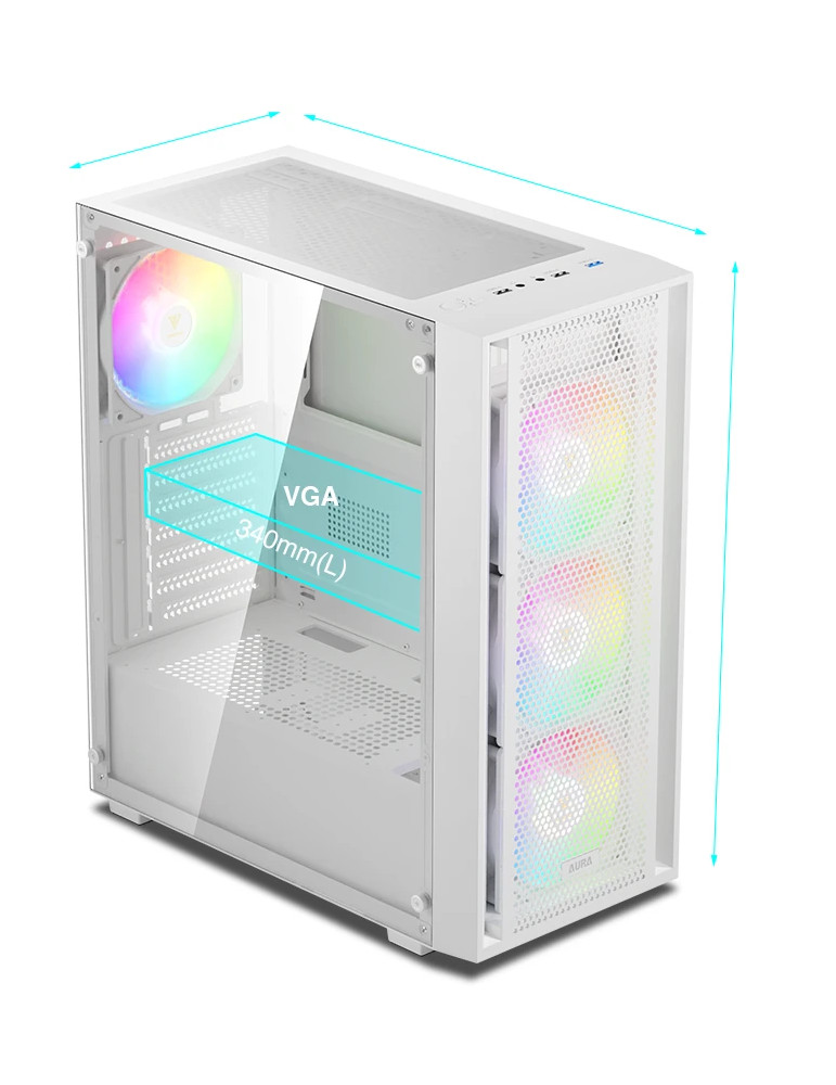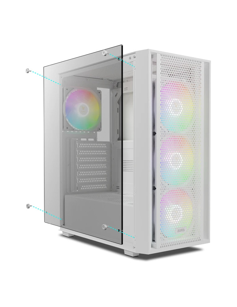 Кутия за компютър Gamdias AURA GC2 Elite White, ATX , Mesh, RGB, Tempered Glass - GAMDIAS-AURA-GC2-ELITE-WH