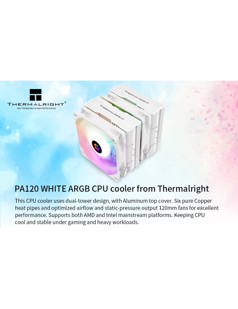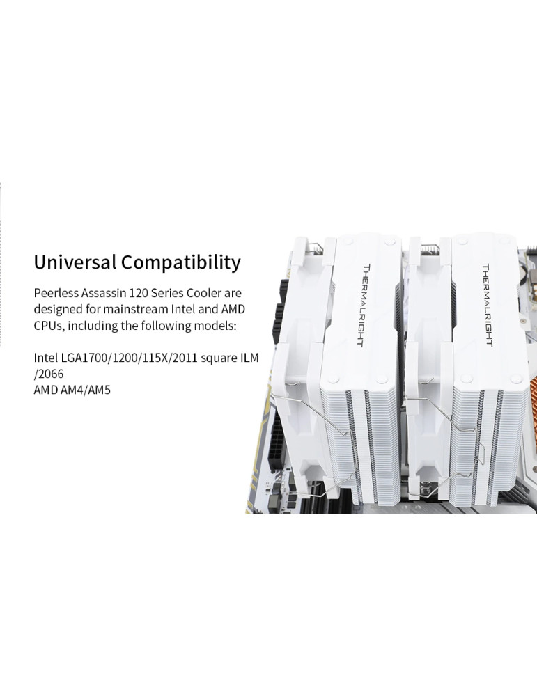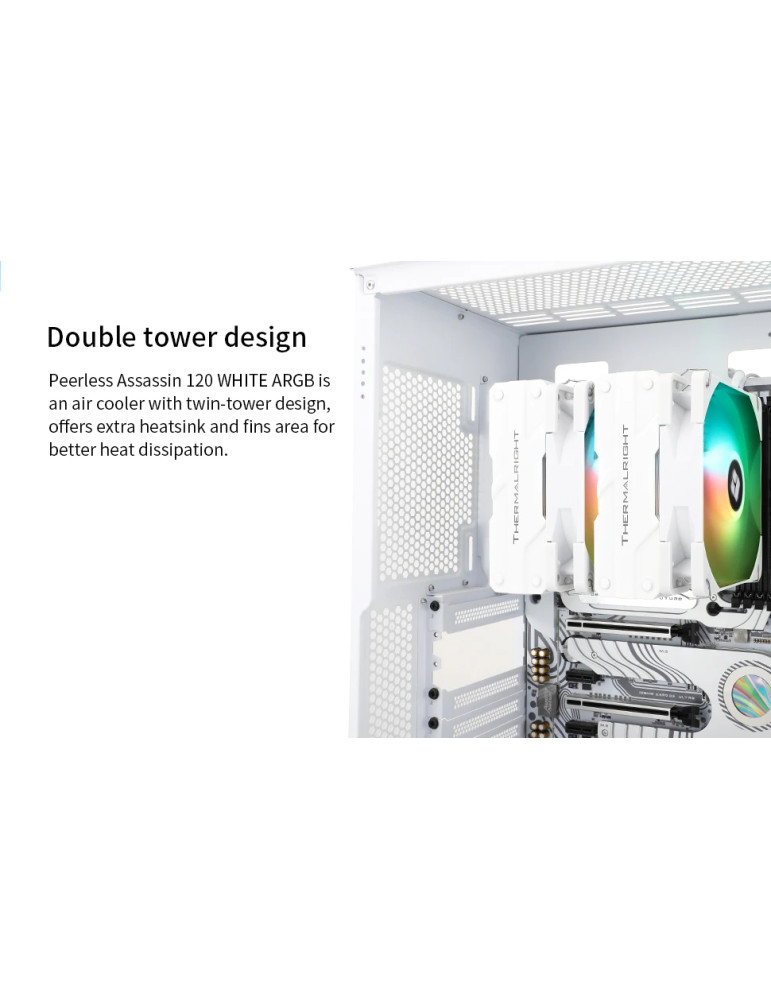 Охладител за процесор Thermalright Peerless Assassin 120 White A-RGB, Dual-Tower, LGA1851/LGA1700/AM5 - PEERLESS-ASSASSIN-120-WH-ARGB