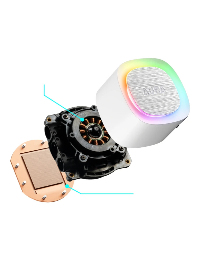 | ДОПЪЛНИТЕЛНИ | 30 Built-in Lighting Effects and Motherboard Sync ARGB Durable Teflon tube with aesthetic Nylon-braided tube sleeve High airflow Hydraulic bearing PWM fan High performance pump up to 2700 RPM Simple cable managemant |