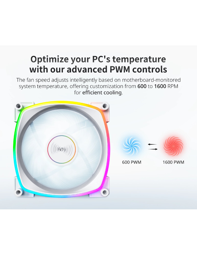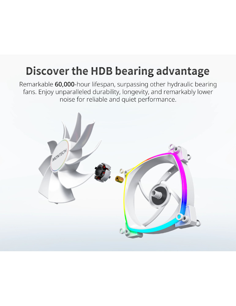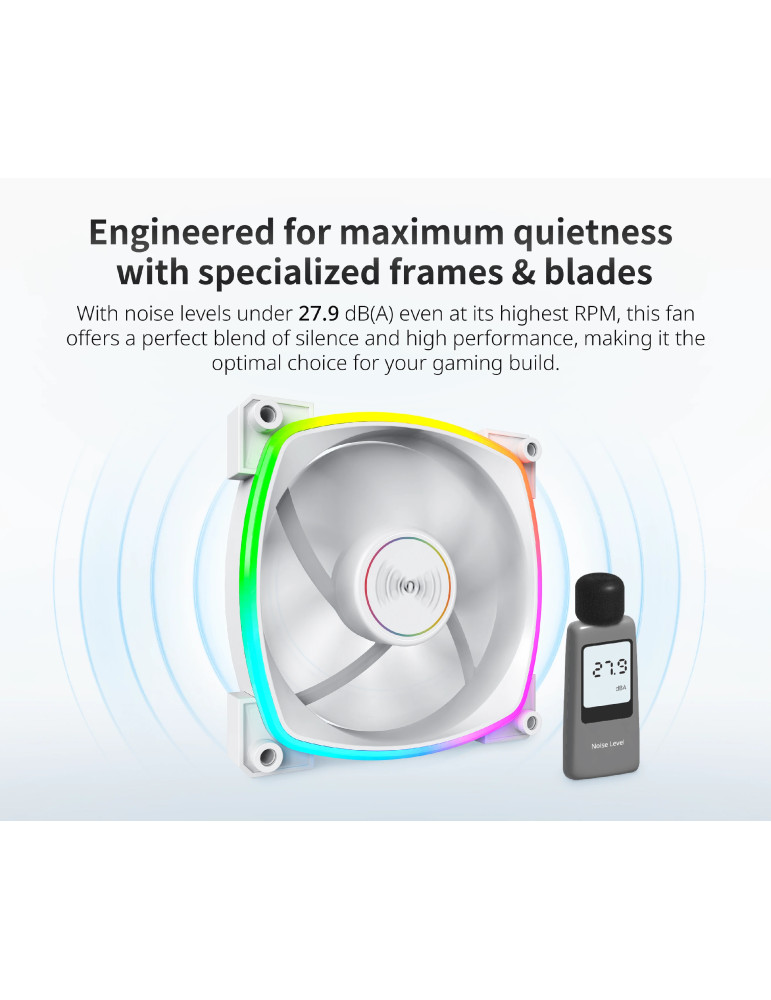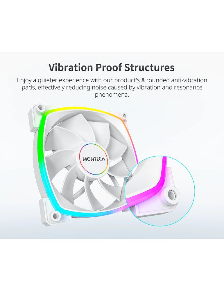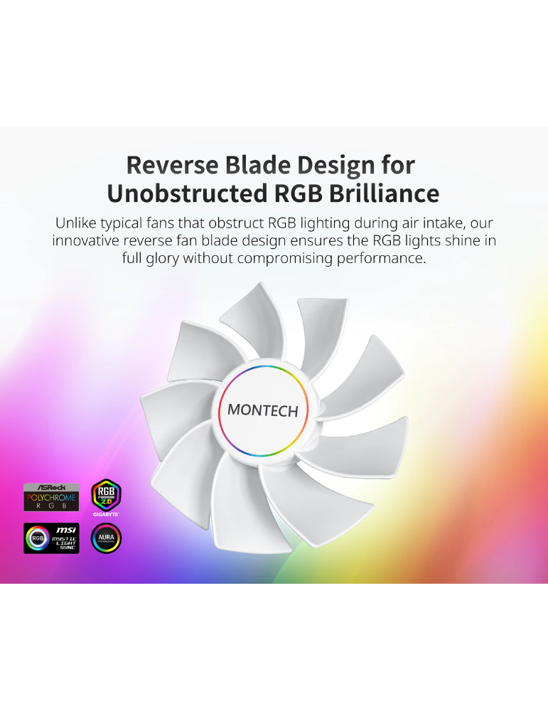 Вентилатор Montech RX140 PWM, REVERSE Fan, 140mm, ARGB, White - MONTECH-RX140-PWM-WH