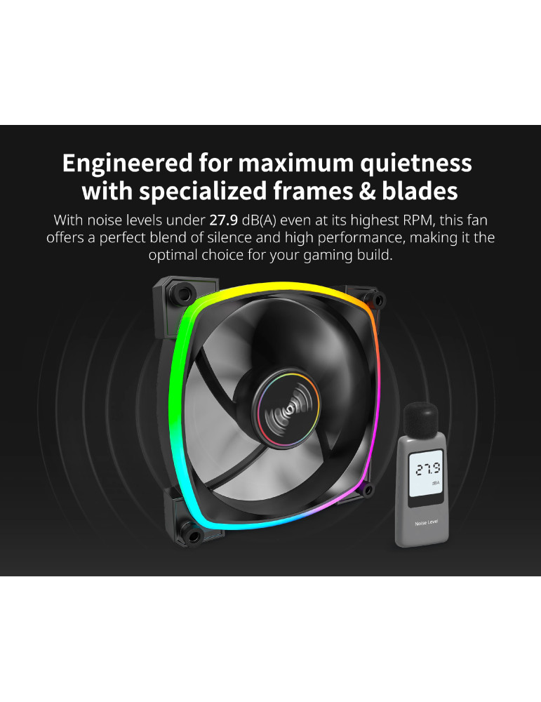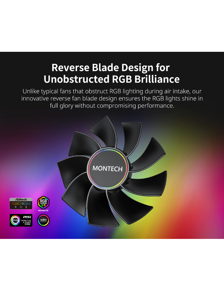 Вентилатор Montech RX140 PWM, REVERSE Fan, 140mm, ARGB, Black - MONTECH-RX140-PWM-BK