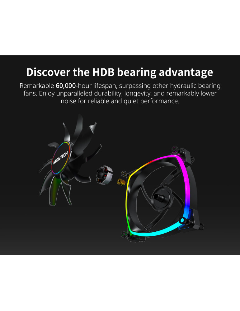 Вентилатор Montech AX140 PWM, Fan 140mm, ARGB, Black - MONTECH-AX140-PWM-BK