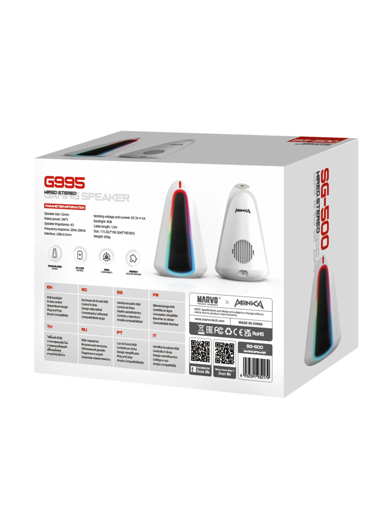 Тонколони Marvo Monka Zilla SG-500, Gaming Speakers 2.0 6W, RGB - MARVO-SG-500
