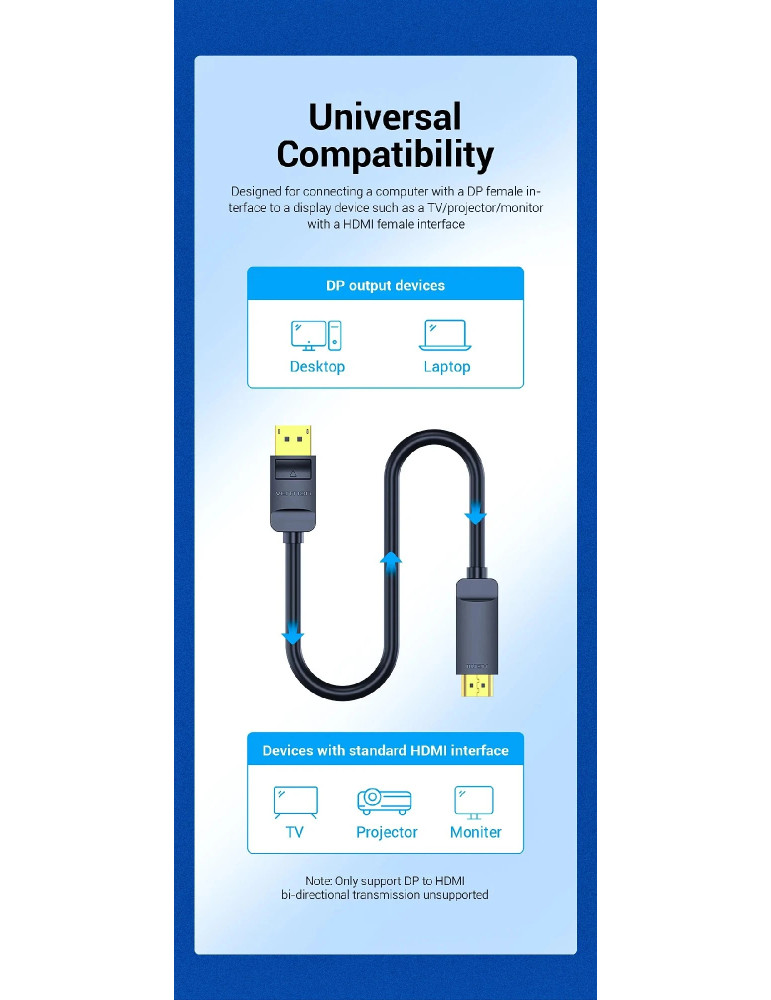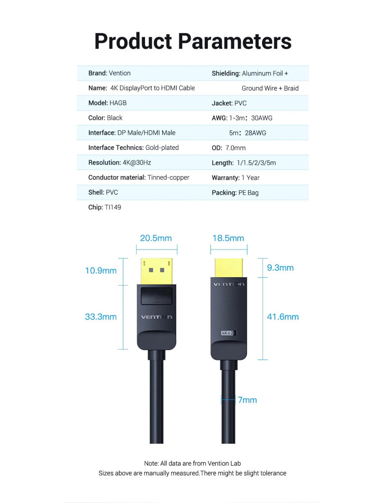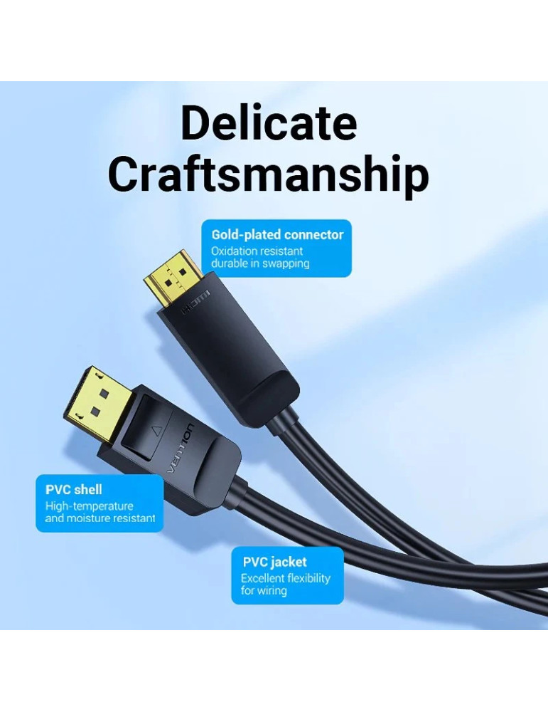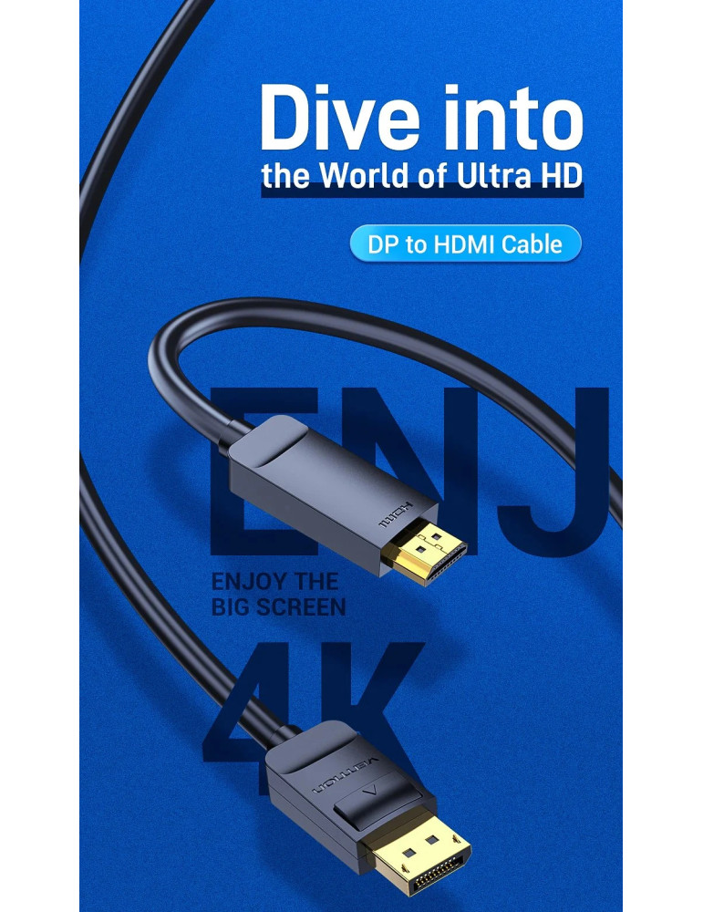 Кабел Vention DisplayPort to HDMI 3.0m - 4K, Gold Plated - HFOBI