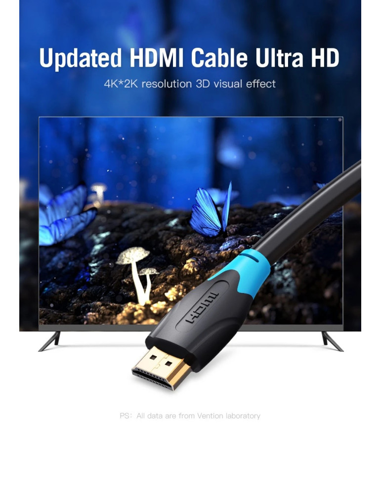 Кабел Vention HDMI v2.0 M / M 4K/60Hz Gold - 20M Black - AACBQ