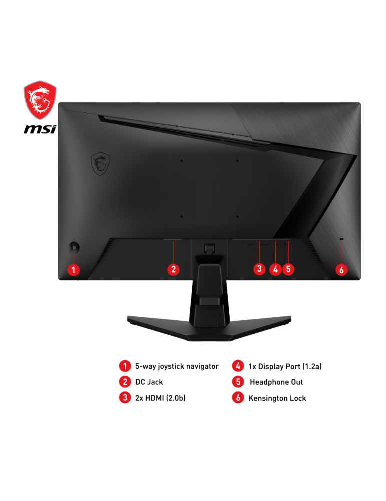 Монитор MSI G255F, 24.5", Rapid IPS, 180Hz, 1ms, FHD, Anti-glare, Adaptive-sync, Night Vision, Frameless, Anti-Flicker, Less Blue Light, 300 nits, 100M:1, DP, HDMI, Headphone out - 9S6-3BC01M-002