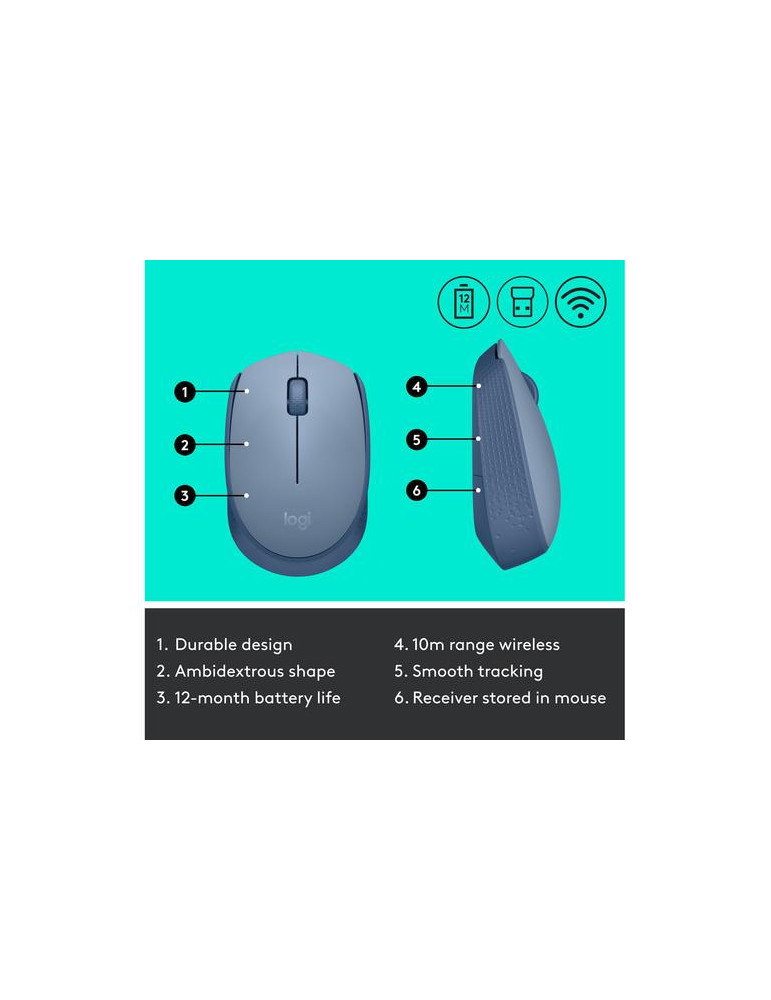 Безжична мишка Logitech M171, USB, Син/Сив - 910-006866