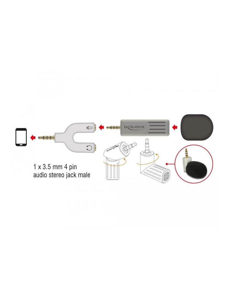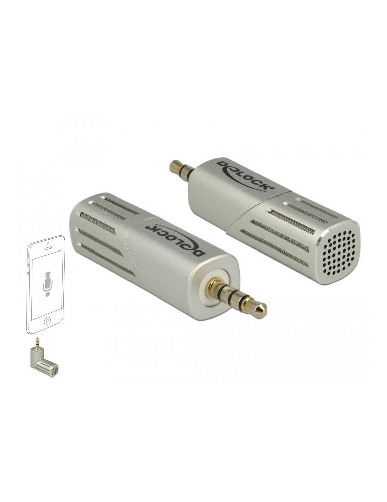 Микрофон DeLock 65893, За смартфон/таблет, 3.5 mm 4 Pin Stereo Jack 90, Сребрист - 65893