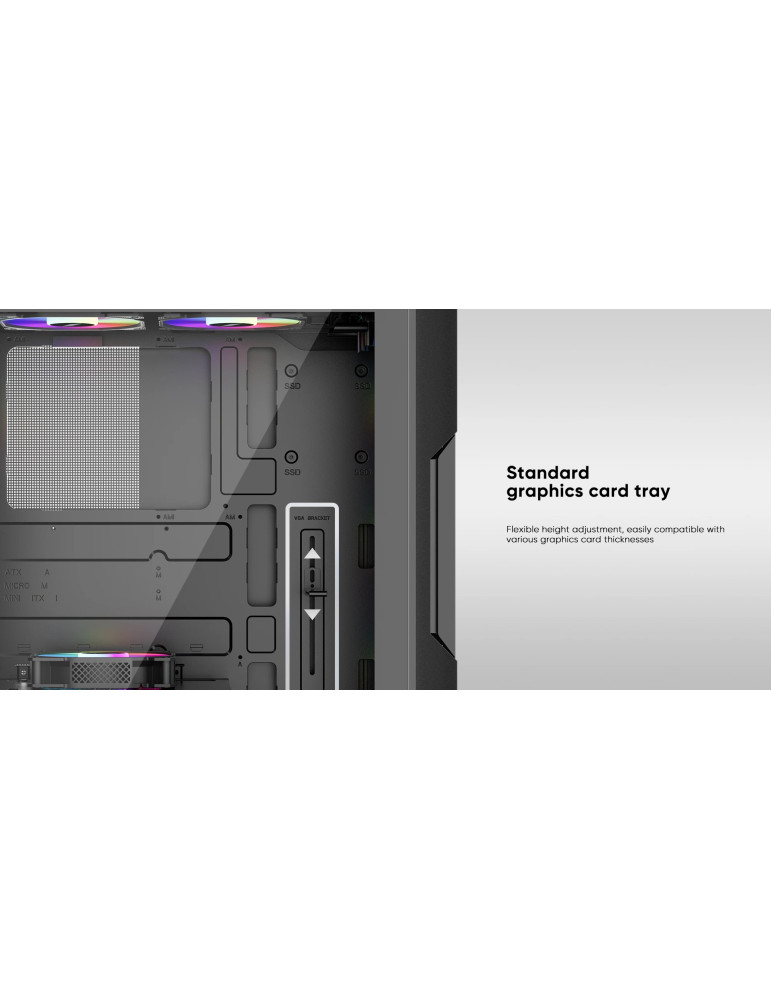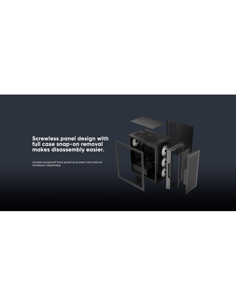 | ДОПЪЛНИТЕЛНИ | Ample ventilation ensures excellent cooling performance Snap-on front, left, and right panels allowing for quick upgrades and maintenance without the need for screws or additional tools Ultra-fine metal mesh front panel to keep components cool and clean |