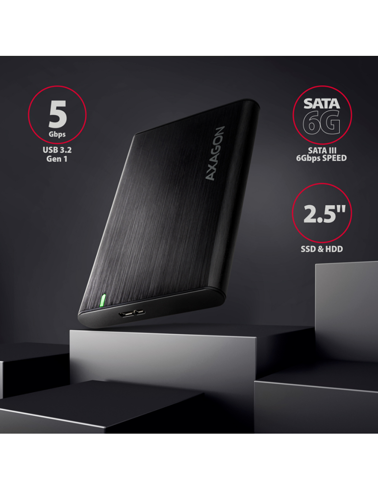 Кутия за твърд/SSD диск Axagon EE25-A6M USB3.0 - SATA 6G 2.5" External SCREWLESS ALU RAW box BLACK - EE25-A6M