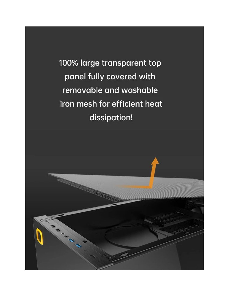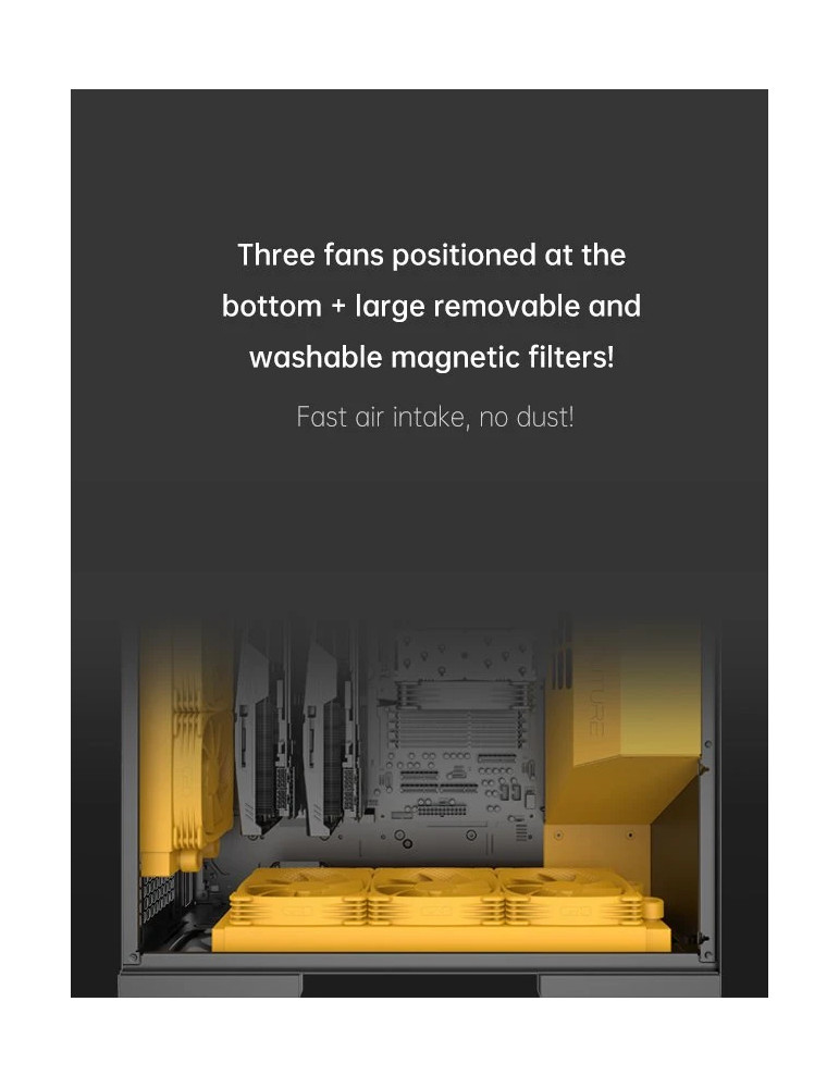 | ДОПЪЛНИТЕЛНИ | Ample cable routing space with back cable width of 29 mm Equipped with USB3.1 type-c port with transmission speed up to 10Gbps The 3.5x PCI-E slot width ensures the air intake of the side-mounted graphics card |