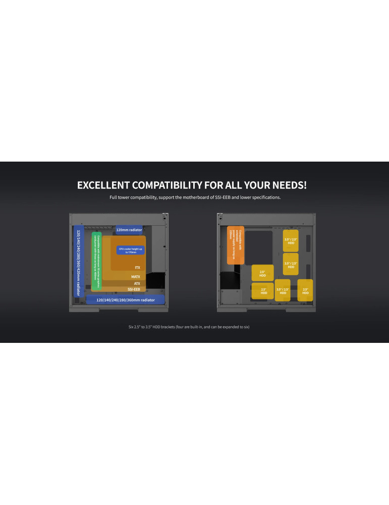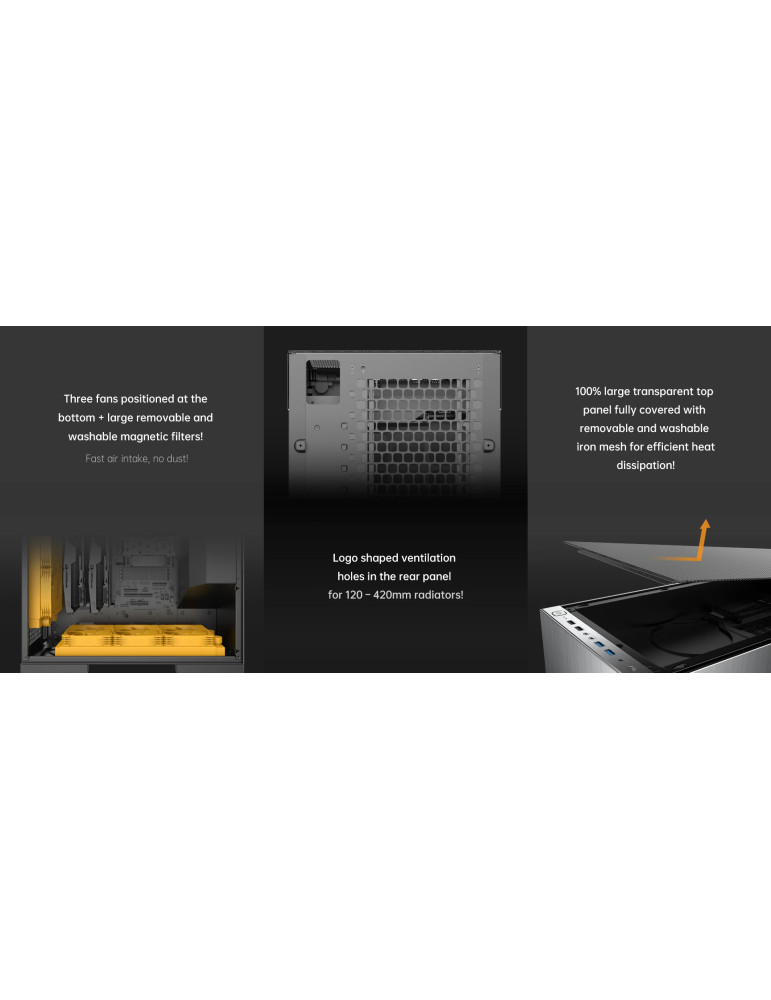 | ОПЦИОНАЛНИ ВЕНТИЛАТОРИ | Bottom: 120 / 140 mm x 3 Rear: 120 / 140 mm x 3 Top: 120 mm x 1 |