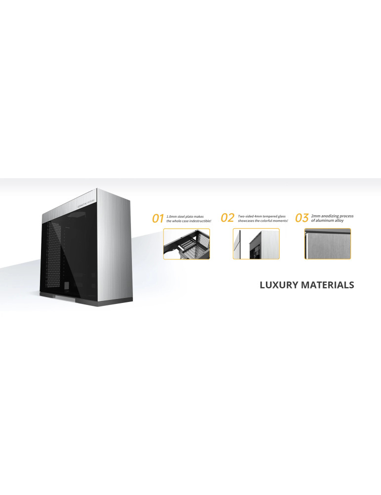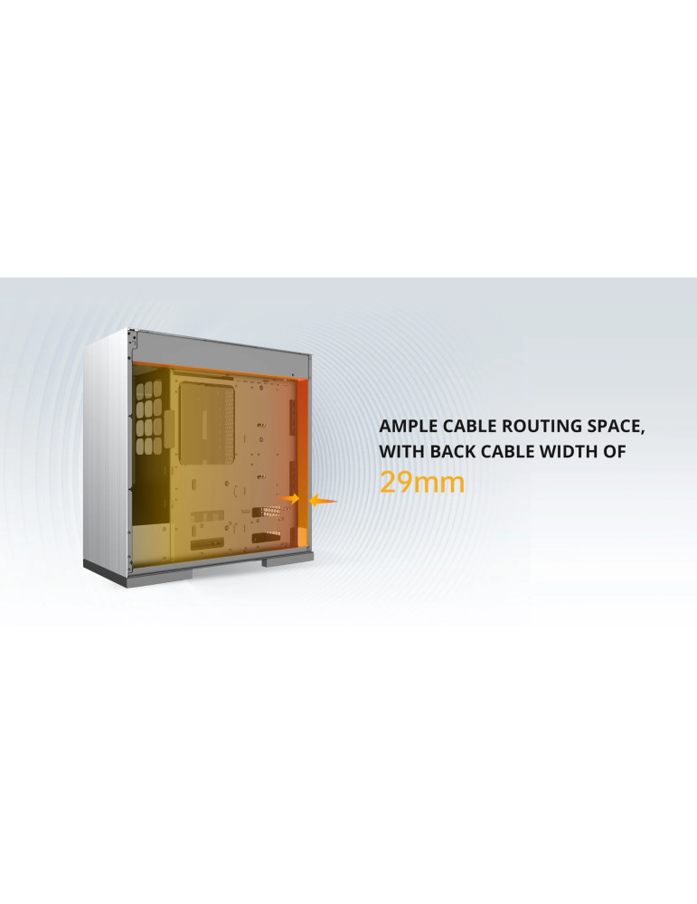 | ДОПЪЛНИТЕЛНИ | Ample cable routing space with back cable width of 29 mm Equipped with USB3.1 type-c port with transmission speed up to 10Gbps The 3.5x PCI-E slot width ensures the air intake of the side-mounted graphics card |