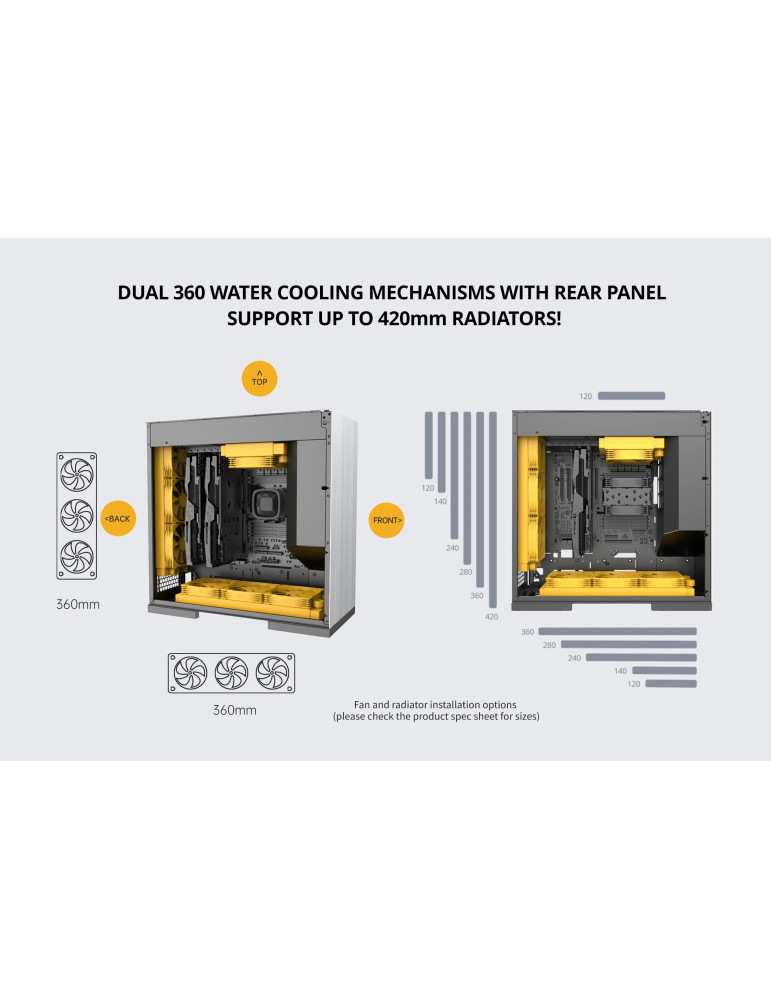 | ПОДДРЪЖКА НА ВОДНО ОХЛАЖДАНЕ | 120 mm - Отгоре 120 mm - Отдолу 120 mm - Отзад 140 mm - Отзад 240 mm - Отдолу 240 mm - Отзад 280 mm - Отдолу 280 mm - Отзад 360 mm - Отдолу 360 mm - Отзад 420 mm - Отзад |