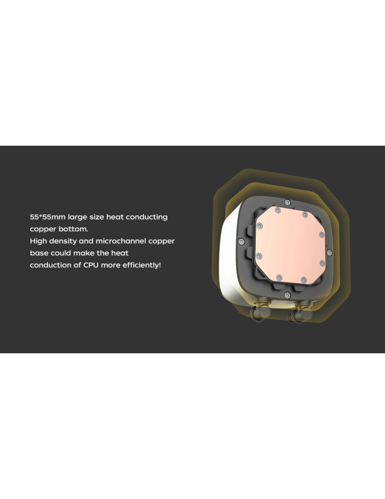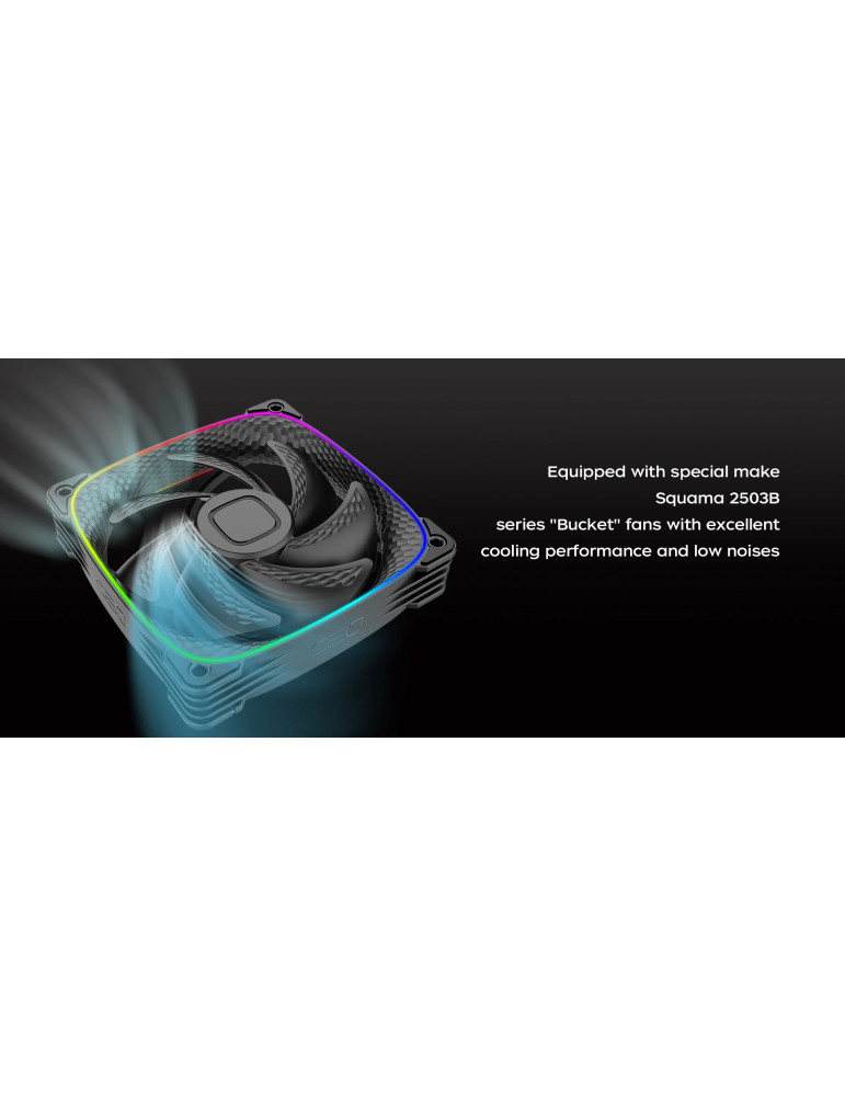 | ДОПЪЛНИТЕЛНИ | 55*55 mm large size heat conducting copper bottom Equipped with special make Squama 2503B series ;Bucket; fans with excellent cooling performance and low noises High light ; Micro-arc top cover Independent external micro pump with high speed and low noise |