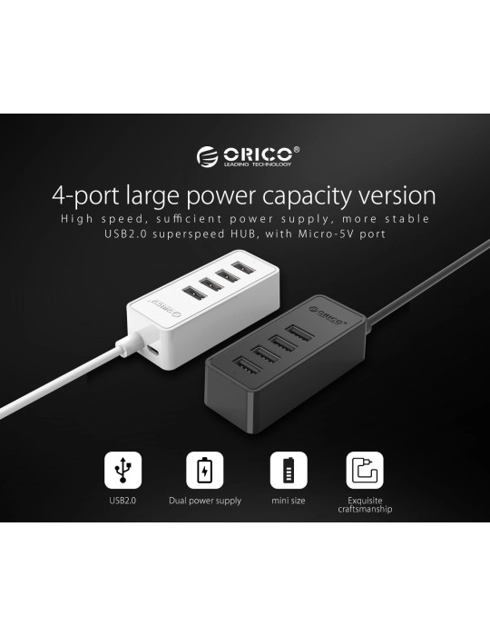 Хъб Orico USB2.0 HUB 4 port - USB/Micro USB input, Black - W5P-U2-030-BK-EP