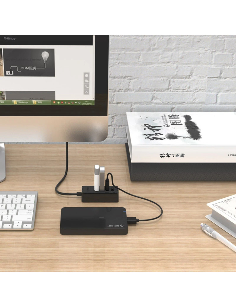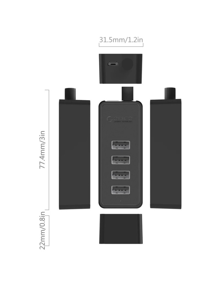 Хъб Orico USB2.0 HUB 4 port - USB/Micro USB input, Black - W5P-U2-100-BK-EP