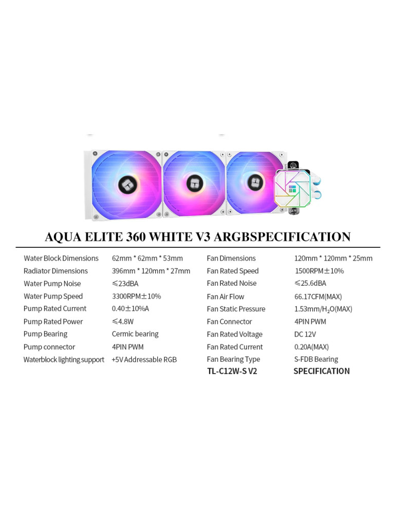 Водно охлаждане за процесор Thermalright Aqua Elite 360 White A-RGB V3, LGA1851/LGA1700/AM5 - AQUA-ELITE-360-WH-ARGB-V3