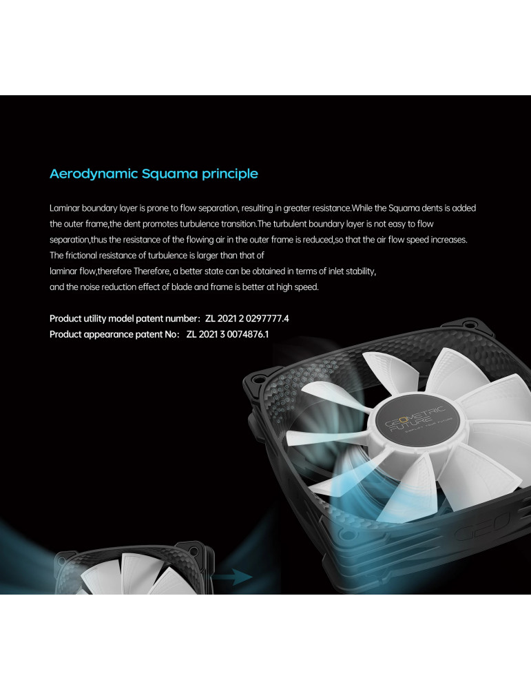 | ДРУГИ | Covered with aerodynamically streamlined dragon scale particles Fine-tuned global dynamic balance for fan Four-corner shockproof rubber pad High-performance noise-reducing soft rubber inner frame High-performance quiet fan High quality brand color Integrated PWM smart control |
