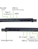 | Интерфейс | HDMI 1x HDMI® 2.1; Displayport via USB Type-C; Thunderbolt 1x Thunderbolt™ 4 (via USB Type-C); USB 3.2 4x (2x Type-C Gen 2, 2x Type-A Gen; 2 (1x Power Off USB Charging); USB 3.1; USB 3.0; USB 2.0; USB 4.0; Ethernet (RJ-45); Cardreader MicroSD Card reader; Smart card reader; Audio port 1x 3.5 mm speaker/headphone/lineout; (supports headsets with integrated; microphone); |
