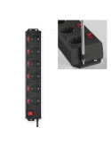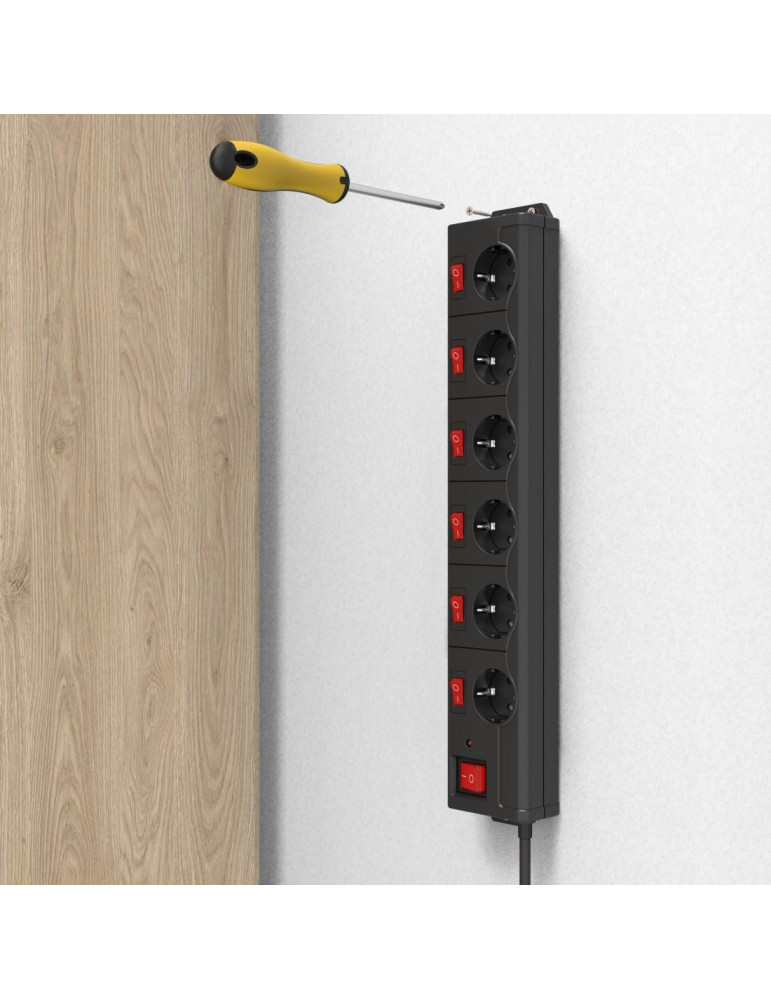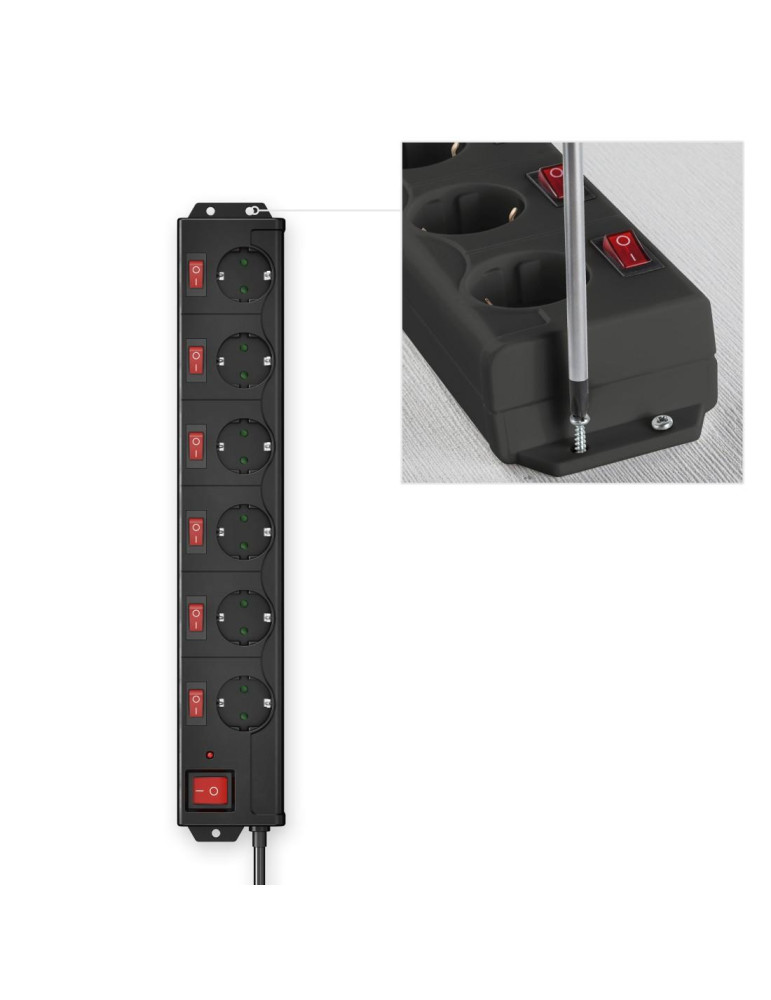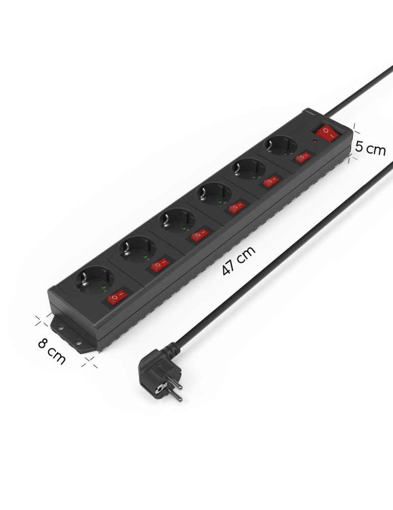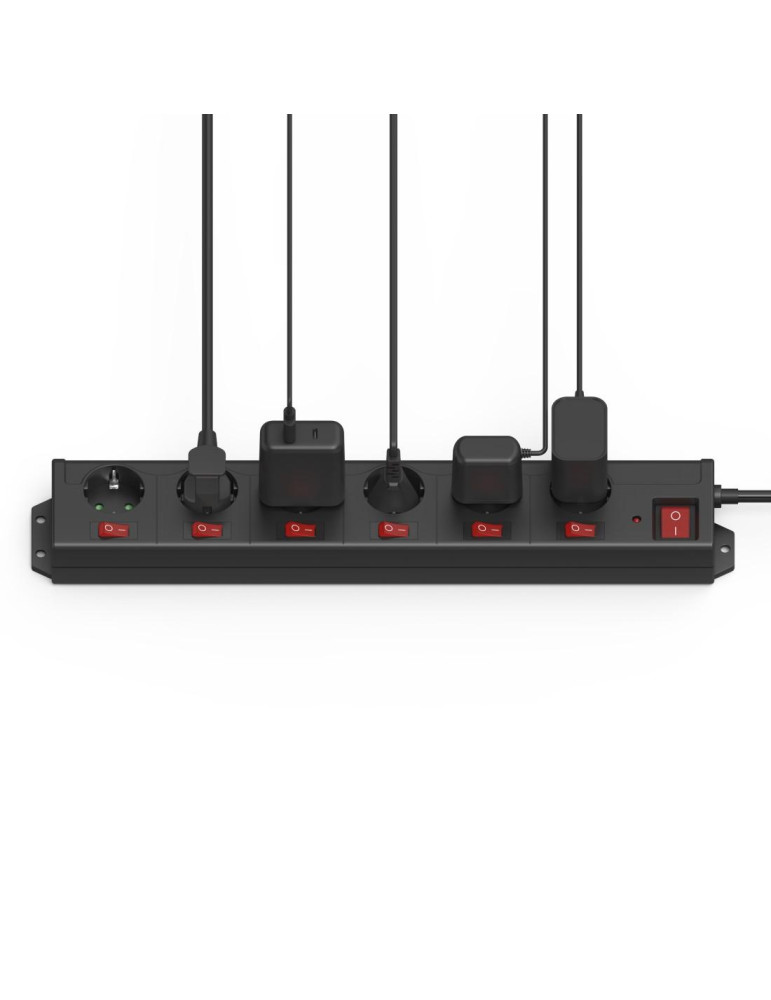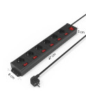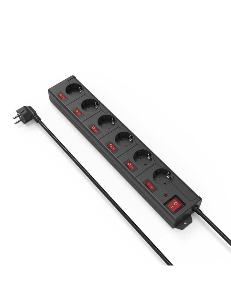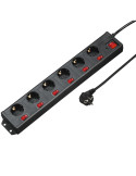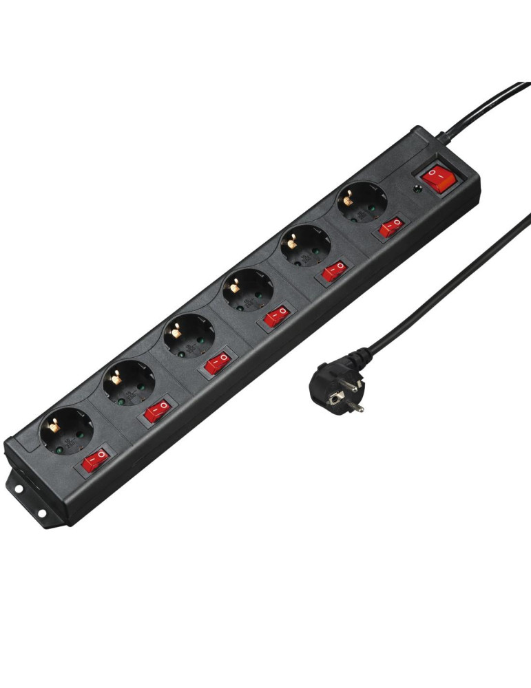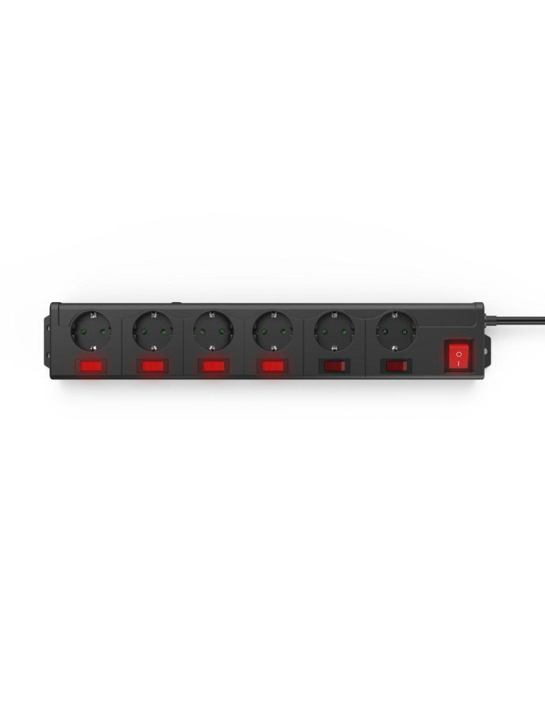 Разклонител HAMA 6 гнезда, 1.4м, индивидуални превключватели, Черен - 223160