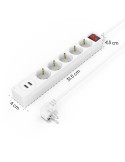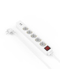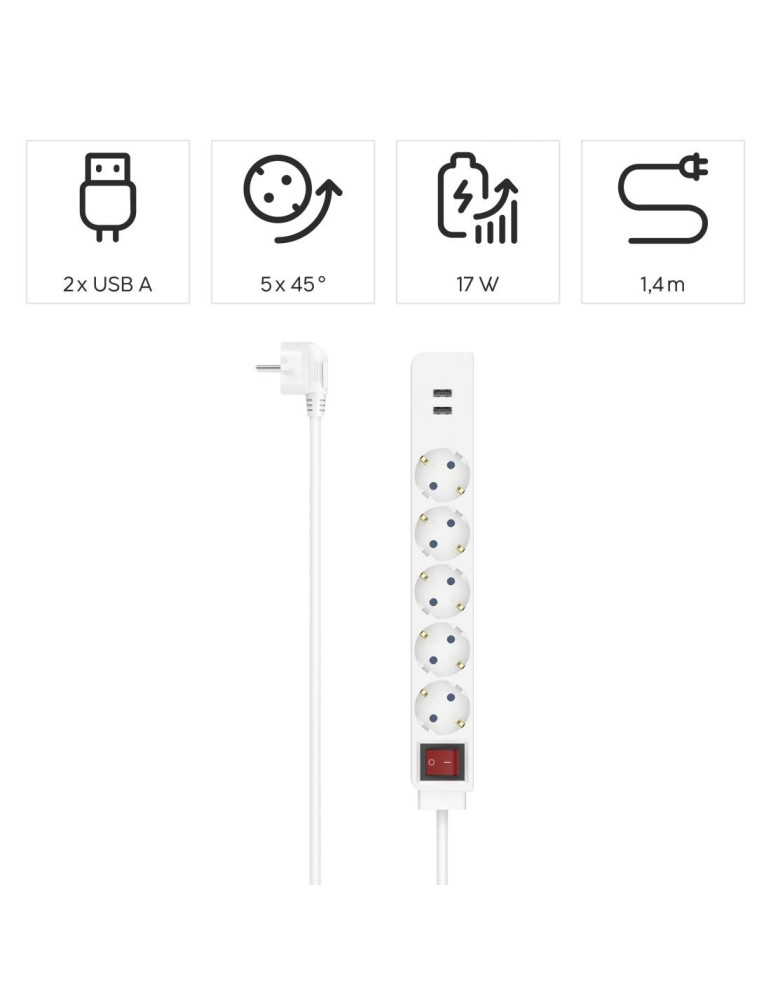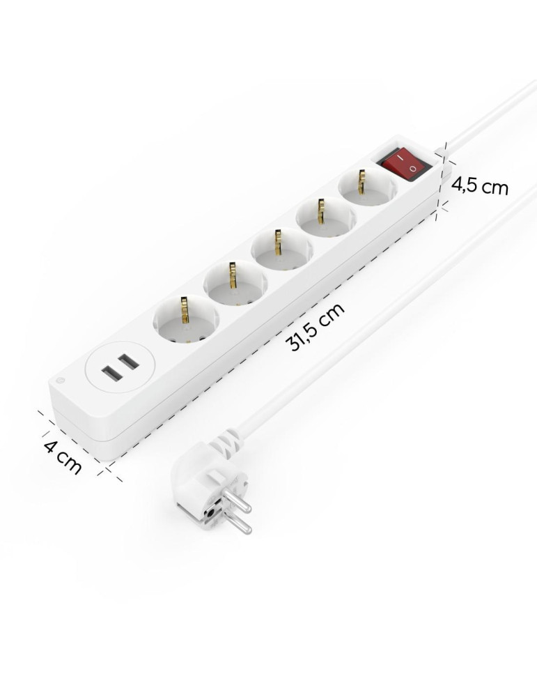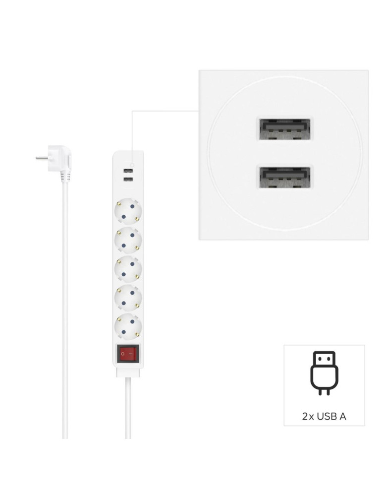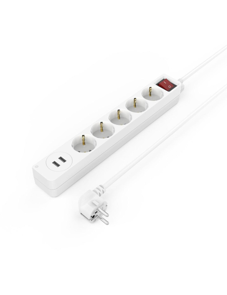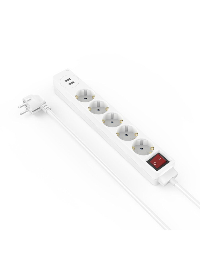 Разклонител HAMA USB 3.4A, 5 гнезда, 2x USB, 3400mA, 1.4м, 3680W, Бял - 223183