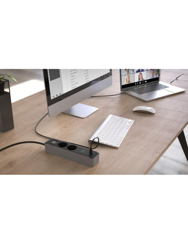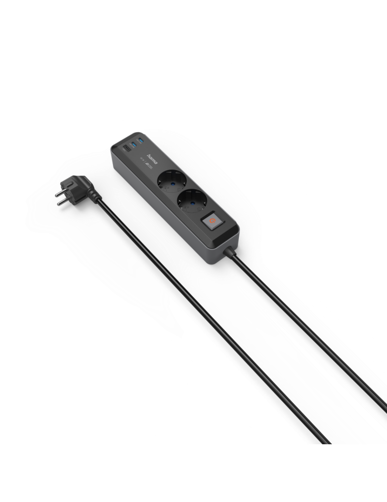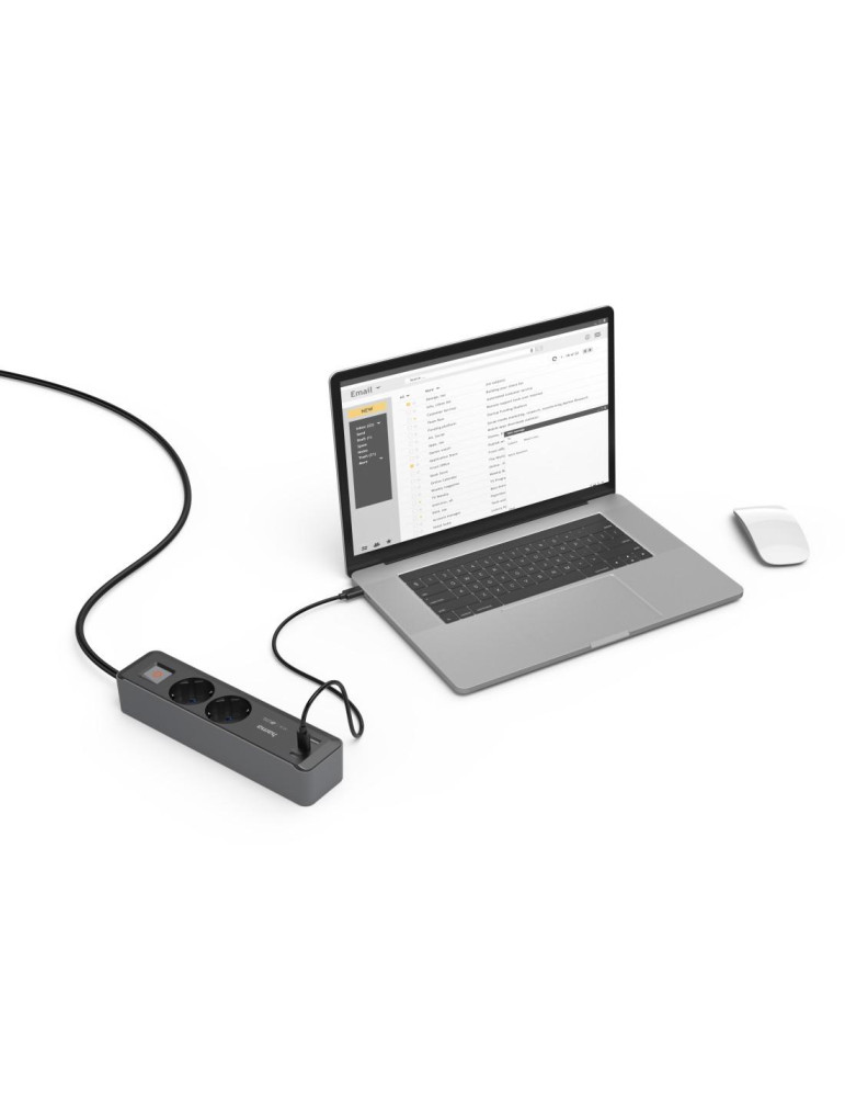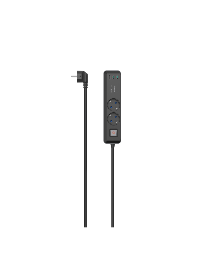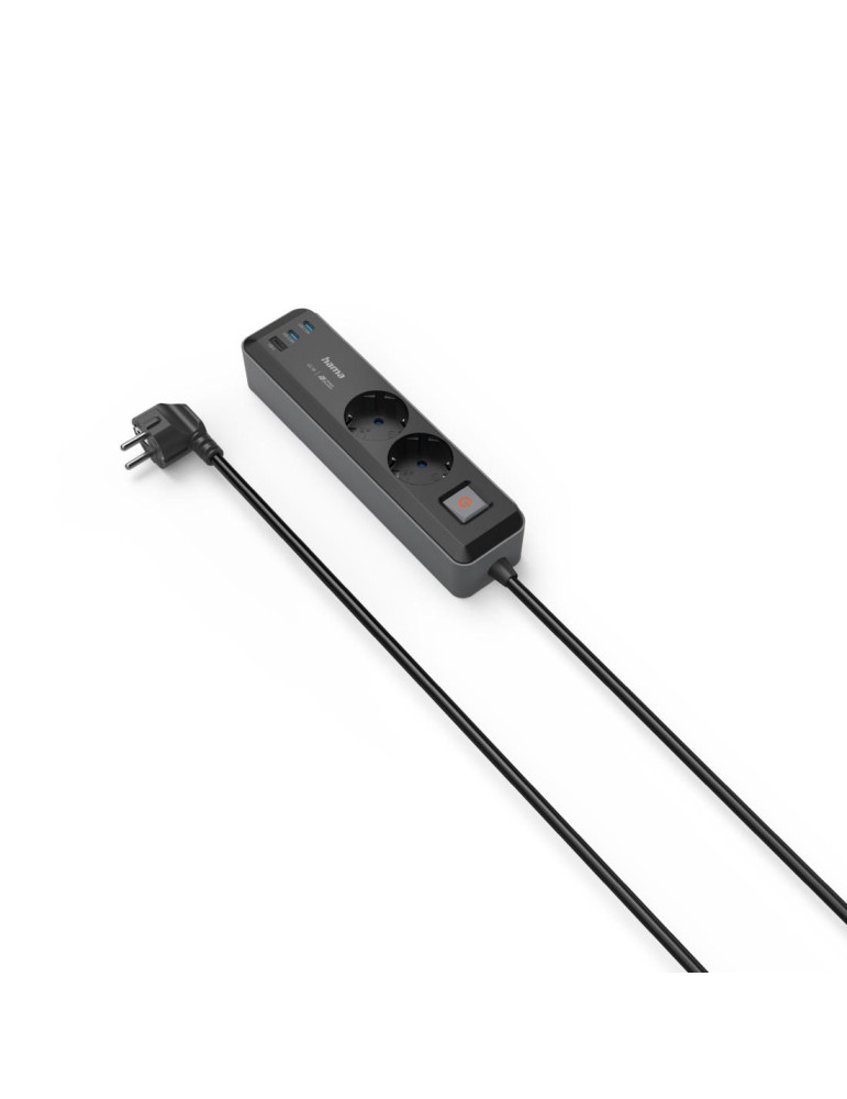 Разклонител Hama, 2-гнезда, USB-C/A 65 W, PD, ключ on/off, 1.4 m, черен/сив - 223188
