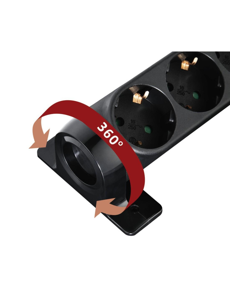 Разклонител HAMA, Въртящ се, 6 гнезда, 1.4м, Защита от пренапрежение, Бутон вкл/изкл, 360, Черен - 223161